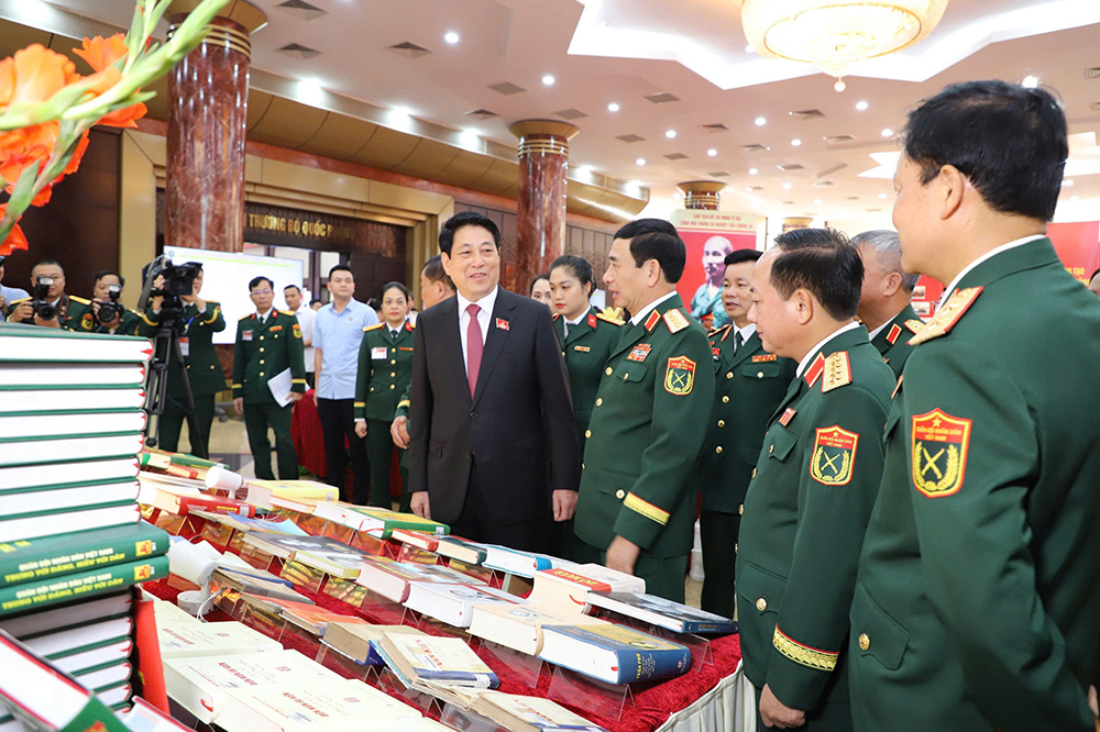| ប្រធានរដ្ឋ Luong Cuong និងថ្នាក់ដឹកនាំ ក្រសួងការពារជាតិ បានទៅទស្សនាកន្លែងតាំងបង្ហាញសៀវភៅនៃបណ្ណាល័យយោធាក្នុងមហាសន្និបាតបក្សយោធាលើកទី ១២ សម្រាប់អាណត្តិ ២០២៥-២០៣០។ |