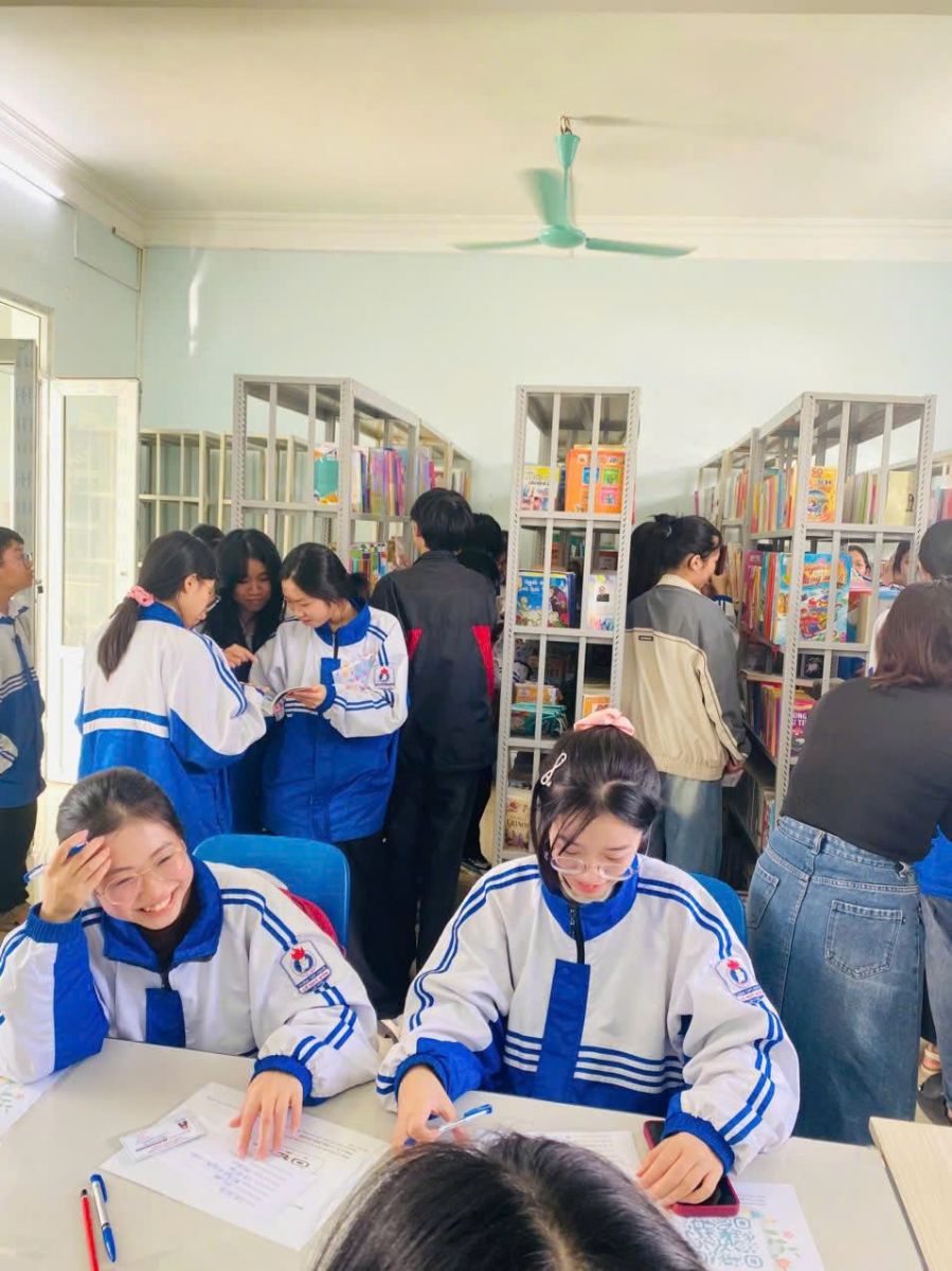 បន្តសកម្មភាពជាបន្តបន្ទាប់នេះ នារសៀលថ្ងៃទី១១ ខែវិច្ឆិកា បណ្ណាល័យខេត្ត Lai Chau បានស្វាគមន៍សិស្សានុសិស្សថ្នាក់ទី១២C១ ឯកទេសភាសាអង់គ្លេស ចំនួន៣៥នាក់ នៅវិទ្យាល័យ Le Quy Don សម្រាប់អំណោយដល់បណ្ណាល័យ ដើម្បីទស្សនា សិក្សាស្វែងយល់ និងរីករាយ ។ ដោយប្រធានបទ "វប្បធម៌អានជាមួយសិស្ស" សិស្សានុសិស្សបានចូលរួមក្នុងសកម្មភាពមានប្រយោជន៍ជាច្រើនដូចជា៖ សិក្សាអំពីតួនាទីនៃវប្បធម៌អាន កម្រងសំណួរចំណេះដឹង។ ស្វែងយល់អំពីស្នាដៃល្បីៗ និងឧទាហរណ៍នៃការស្ទូឌីយោ និងការអានដូចជា៖ ហូជីមិញ ម៉ាក ឌិញជី ត្រាន ដាយងៀ ង្វៀន ឃុយយ៉ិន ស្វែងយល់អំពីការបង្កើត និងអភិវឌ្ឍន៍ខេត្តឡៃចូវតាមសម័យកាល ជនជាតិក្នុងខេត្ត បទពិសោធន៍អានជាក្រុម និងចែករំលែកសៀវភៅល្អៗដែលសិស្សចូលចិត្តជាងគេ... ទន្ទឹមនឹង សកម្មភាពនេះ សិស្សានុសិស្សក៏ទទួលបានបណ្ណបណ្ណាល័យដោយឥតគិតថ្លៃ ទស្សនាផ្ទះអាន បន្ទប់សៀវភៅថ្មី និងសៀវភៅ។ សេវាកម្មបណ្ណាល័យងាយស្រួលដូចជា របៀបរកមើលឯកសារ អានសៀវភៅតាមអ៊ីនធឺណិត ធ្វើកាតអ្នកអាន... លើសពីនេះ សិស្សានុសិស្សក៏ ចូលរួមលេងល្បែងប្រជាប្រិយ និងទំនើបផងដែរ។