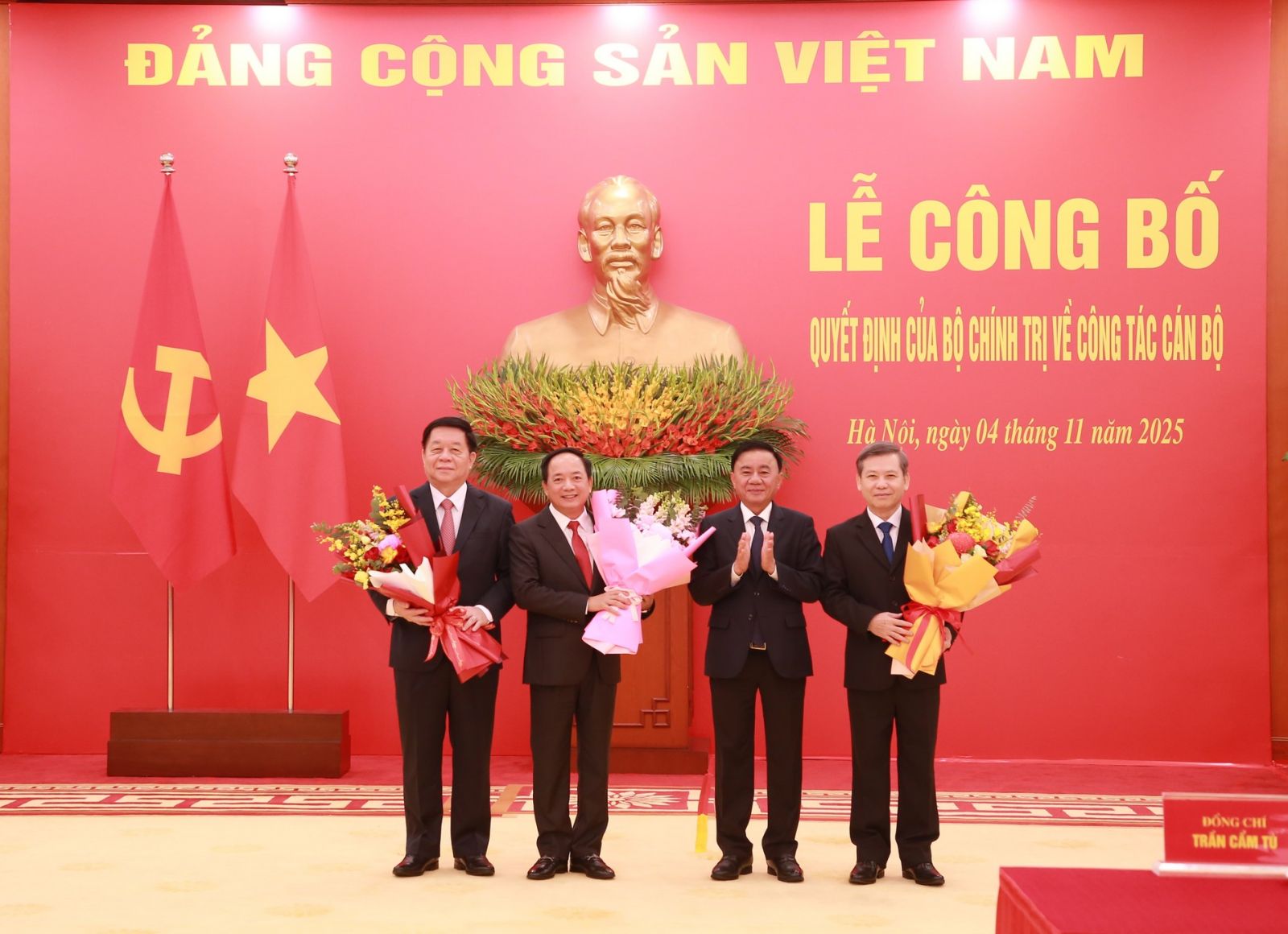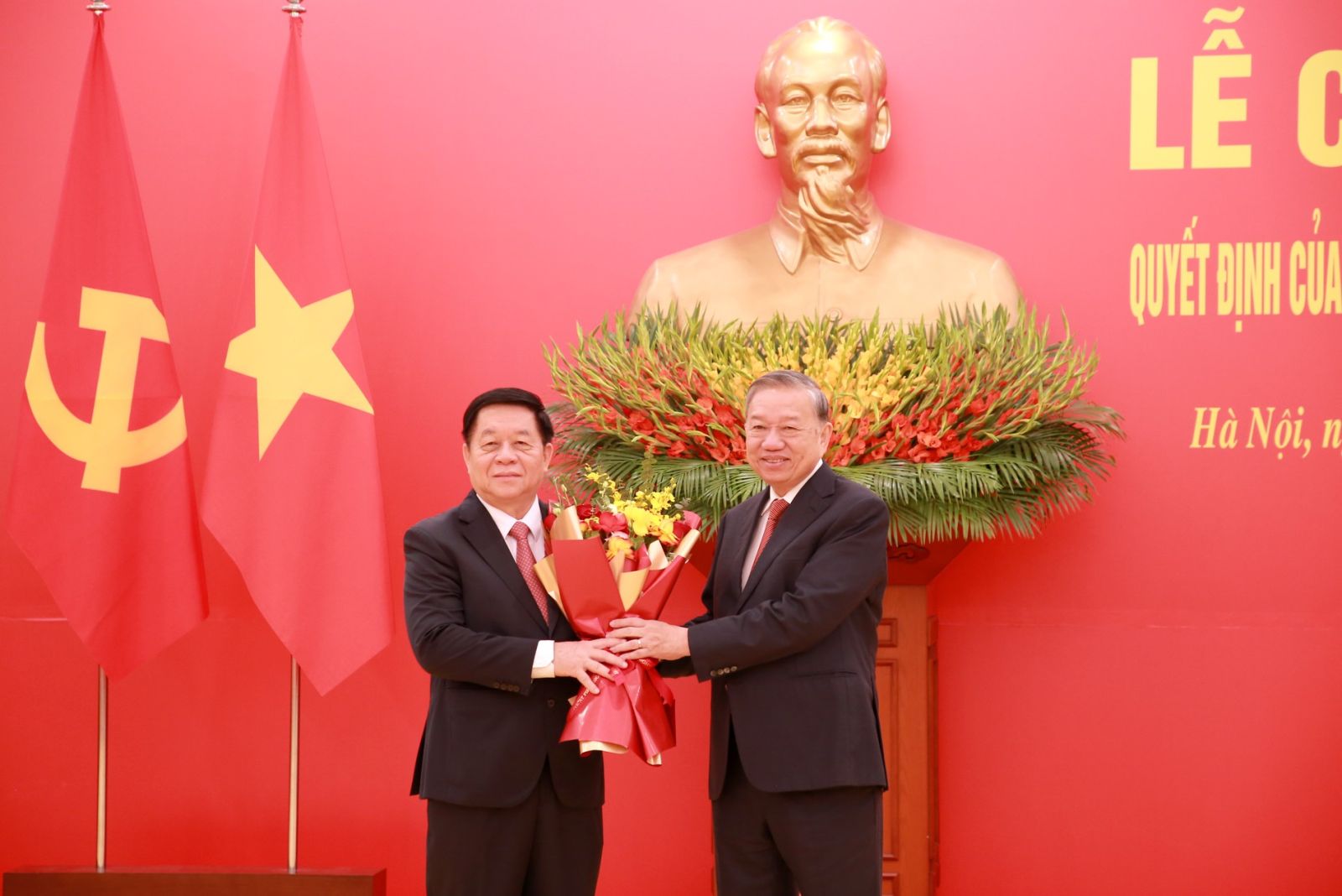 ក្នុងពិធីប្រកាសនោះ ក្នុងនាមការិយាល័យនយោបាយ អគ្គលេខាបក្ស To Lam បានបង្ហាញពីសេចក្តីសម្រេចរបស់ការិយាល័យនយោបាយក្នុងការផ្ទេរ និងតែងតាំងឧត្តមសេនីយ Trinh Van Quyet លេខាគណៈកម្មាធិការមជ្ឈិមបក្ស ប្រធាននាយកដ្ឋាននយោបាយនៃកងទ័ពប្រជាជនវៀតណាម ទៅកាន់តំណែងជាប្រធានគណៈកម្មាធិការឃោសនា និងចលនាមហាជនមជ្ឈិម; បានបង្ហាញសេចក្តីសម្រេចរបស់ការិយាល័យនយោបាយ ក្នុងការចាត់តាំងសមមិត្ត Le Minh Tri លេខាគណៈកម្មាធិការមជ្ឈិមបក្ស ប្រធានចៅក្រមនៃតុលាការប្រជាជនកំពូល ទៅកាន់តំណែងជាអនុប្រធានគណៈកម្មាធិការអចិន្ត្រៃយ៍ នៃគណៈកម្មាធិការកិច្ចការផ្ទៃក្នុងមជ្ឈិម ។