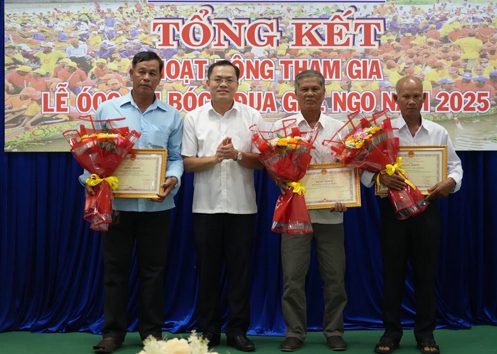 អនុប្រធានគណៈកម្មាធិការប្រជាជនខេត្ត លោក Ngo Vu Thang បានប្រគល់ប័ណ្ណសរសើរដល់សមូហភាពដែលមានស្នាដៃឆ្នើមក្នុងការអភិរក្ស និងលើកកម្ពស់អត្តសញ្ញាណវប្បធម៌ប្រពៃណីរបស់ជនជាតិខ្មែរ។