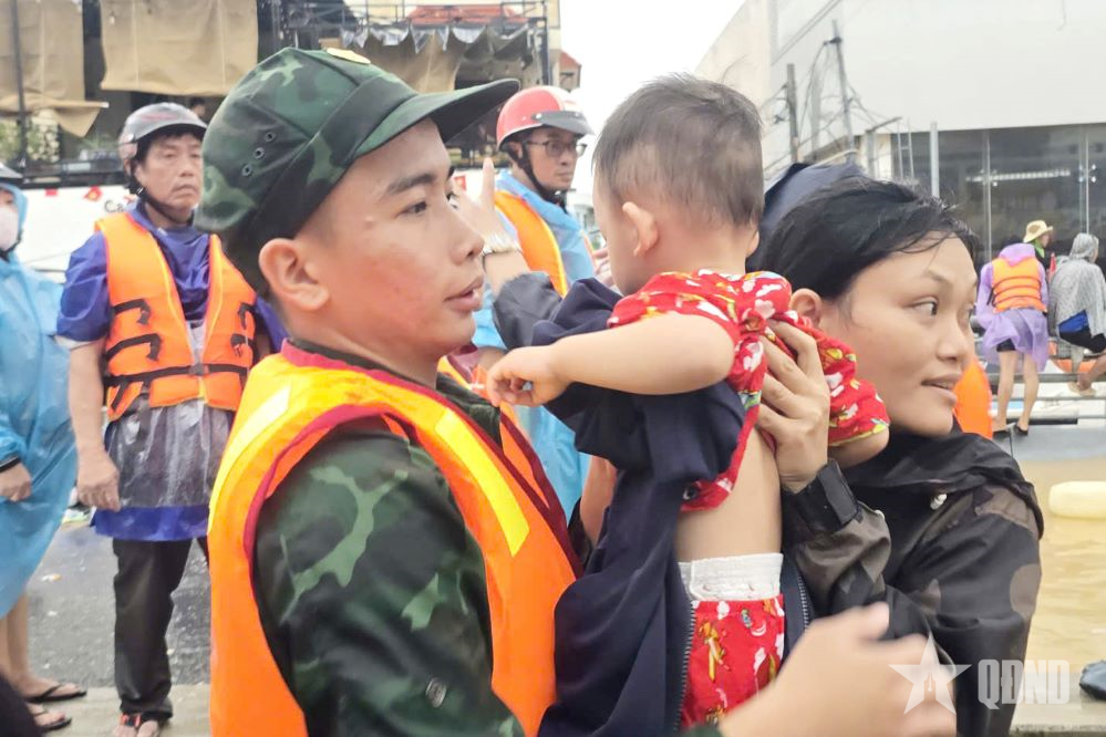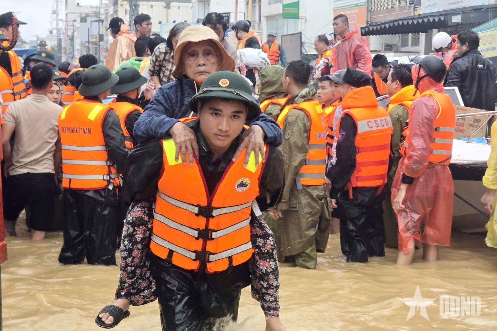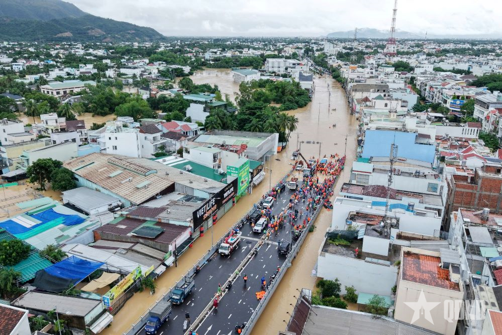 ផ្លូវ 23-10 សង្កាត់ Tay Nha Trang (Khanh Hoa) ជាកន្លែងដែលការជួយសង្គ្រោះកំពុងដំណើរការចំពេលមានទឹកជំនន់ដ៏ខ្លាំង។ រូបថត៖ XUAN NGOC |