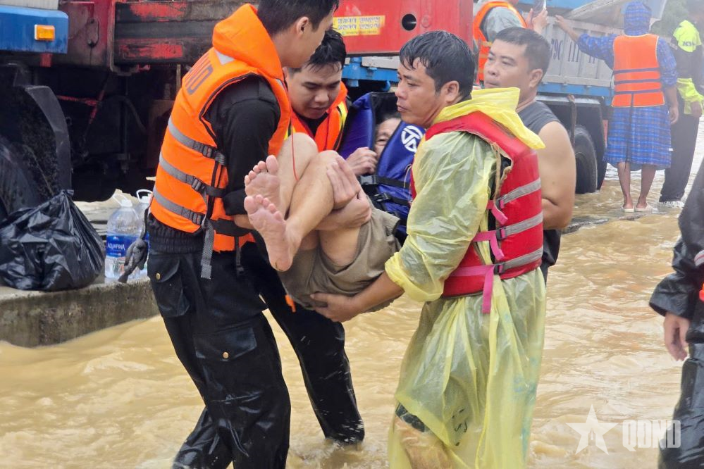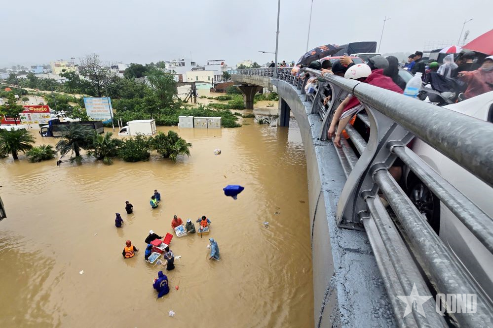 | ផ្លូវប្រសព្វង៉ុក ហូយ បានក្លាយជាកន្លែងប្រមូលផ្តុំកម្លាំង និងយានជំនិះ ហើយក៏ជាកន្លែងដែលប្រជាពលរដ្ឋរាយការណ៍ថា នៅតែជាប់គាំងនៅតំបន់ទឹកជំនន់។ |