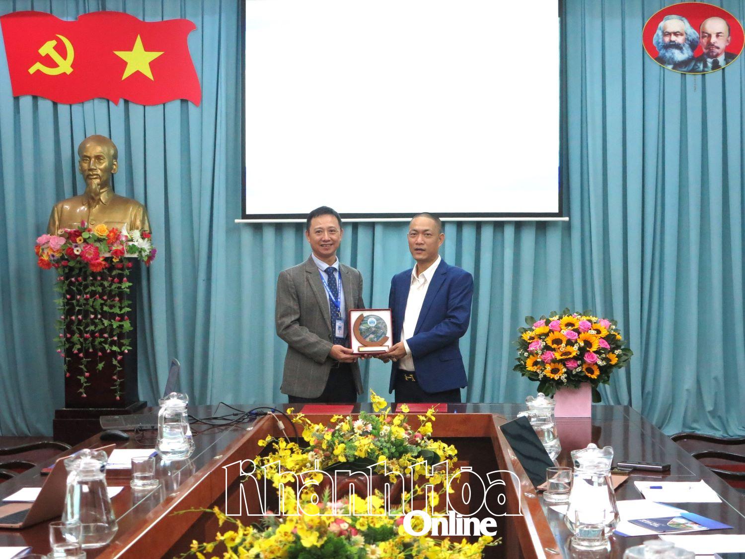 | ថ្នាក់ដឹកនាំនៃសាកលវិទ្យាល័យ Nha Trang ប្រគល់វត្ថុអនុស្សាវរីយ៍ដល់ក្រុមហ៊ុន Saigon Technology Services Joint Stock Company។ |