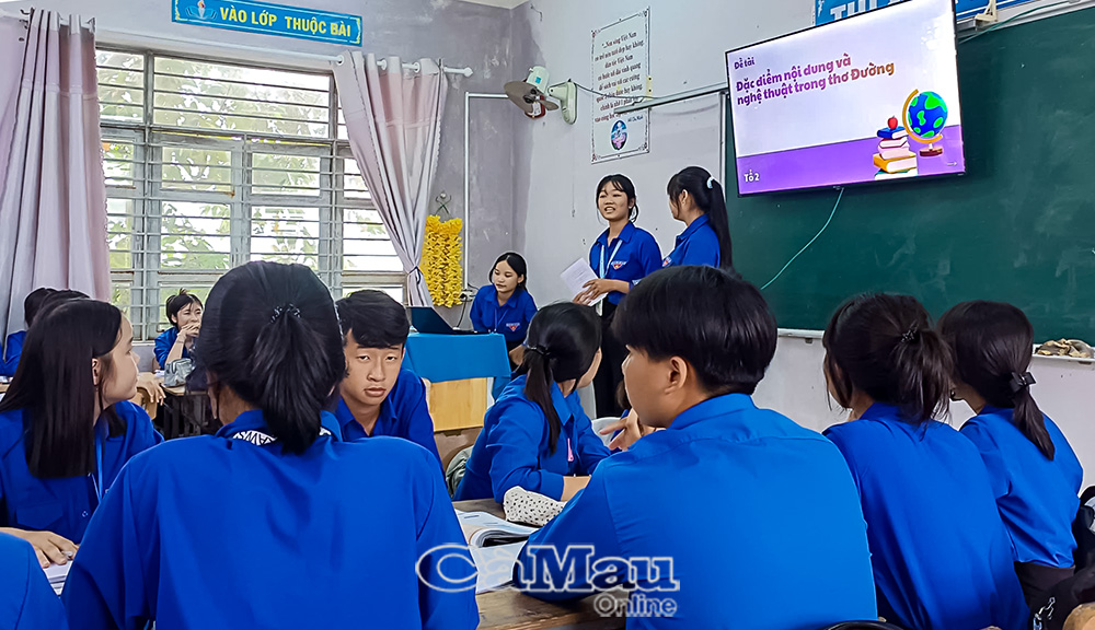 វិទ្យាល័យ Ninh Thanh Loi គឺជាសាលាអន្តរកម្រិតមួយដែលផ្តោតលើការច្នៃប្រឌិតវិធីសាស្រ្តបង្រៀន និងរៀនតាមរបៀបដែលផ្តោតលើអ្នកសិក្សា។ (ក្នុងរូបថត៖ មេរៀនកំណាព្យ Tang ដោយសិស្សវិទ្យាល័យ Ninh Thanh Loi)។