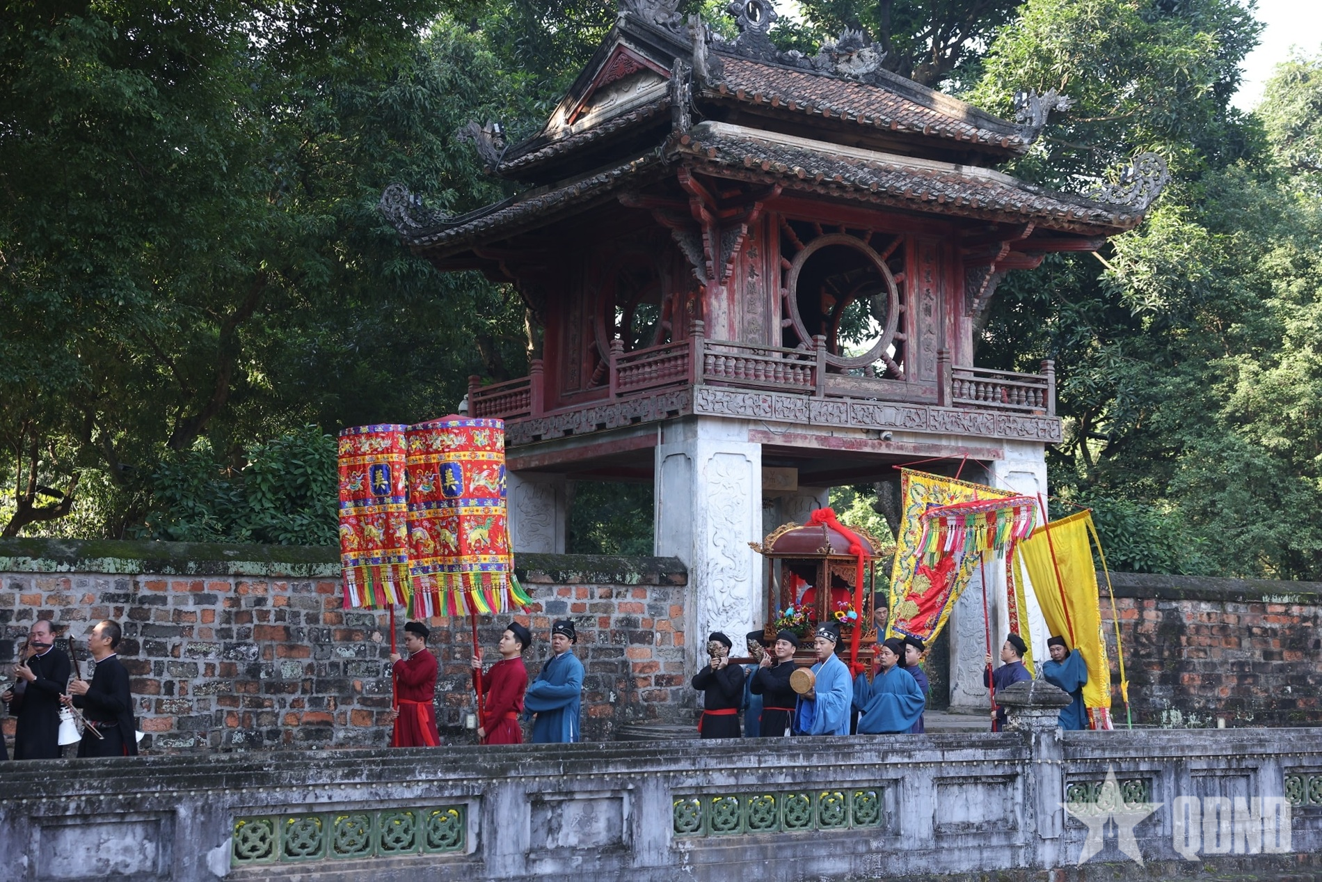 ទិដ្ឋភាពនៃក្បួនដង្ហែនៅប្រាសាទអក្សរសាស្ត្រ - Quoc Tu Giam ។ |