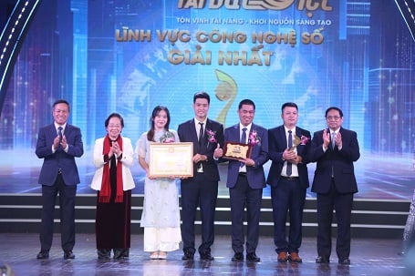 នាយករដ្ឋមន្ត្រី Pham Minh Chinh សាស្ត្រាចារ្យបណ្ឌិត Nguyen Thi Doan ប្រធានសមាគមលើកកំពស់ការអប់រំវៀតណាម និងលោក To Dung Thai ប្រធានក្រុមប្រឹក្សាភិបាលនៃ VNPT Group បានប្រគល់រង្វាន់ទីមួយក្នុងវិស័យបច្ចេកវិទ្យាឌីជីថល NTĐV 2023
