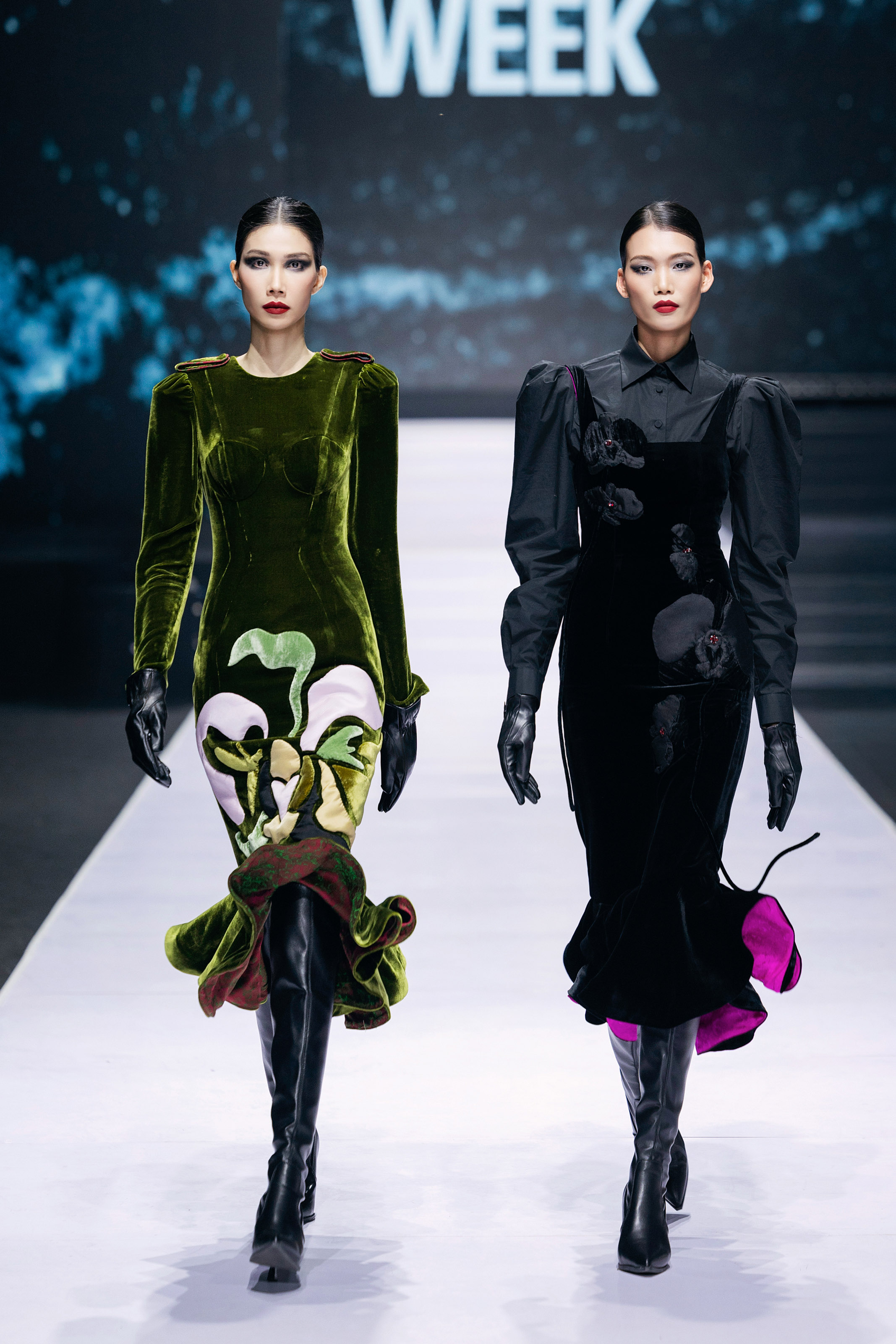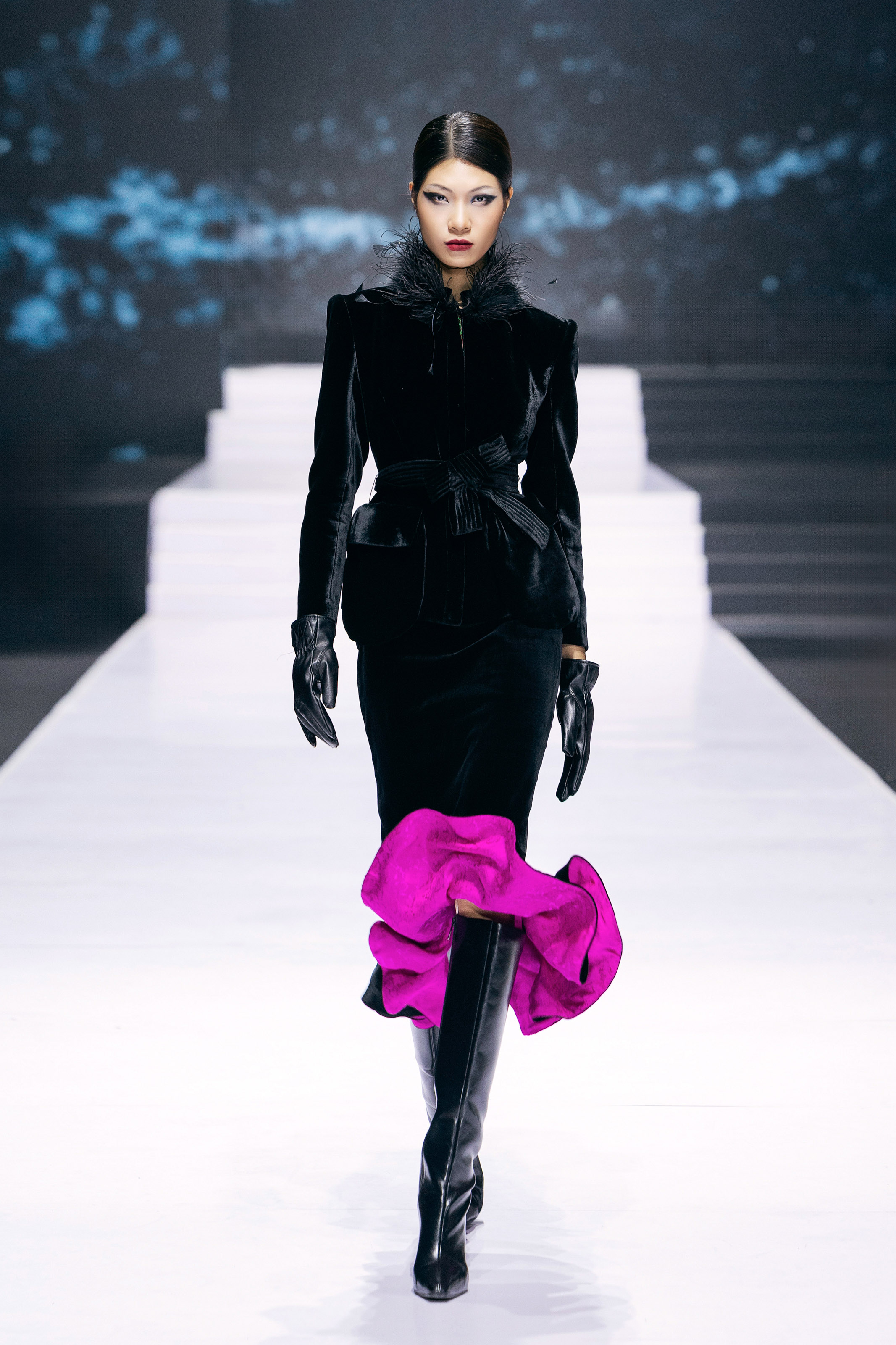 ការសម្តែងដំបូងនៃ ការប្រមូល Black Parade គឺ The Face Vietnam 2023 Champion Huynh Tu Anh ។ នាងបានដើរដោយមោទនភាពក្នុងសម្លៀកបំពាក់វល្លិ៍ខ្មៅដែលគ្របដណ្ដប់ដោយក្រណាត់សូត្រដែលមានក្លិនស្អុយ រួមផ្សំជាមួយនឹងស្បែកជើងកវែងស្បែកកខ្ពស់ និងព័ត៌មានលម្អិតអំពីផ្កាអ័រគីដេធ្វើដោយដៃ បង្កើតរូបភាពនៃឧត្តមសេនីយសម័យទំនើបដ៏រឹងមាំ ប៉ុន្តែសោភ័ណភាព។