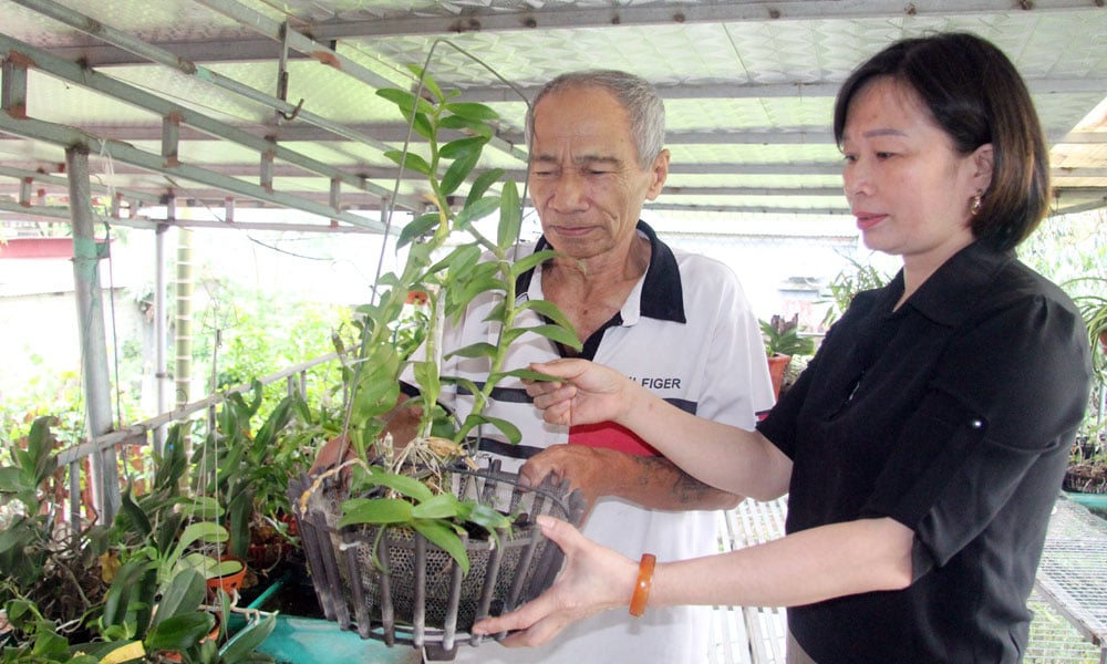 លោក Luong Huu Thanh (ឪពុករបស់ Luong Huu Hanh) ណែនាំគំរូដាំផ្កាអ័រគីដេរបស់កូនប្រុសគាត់។ |