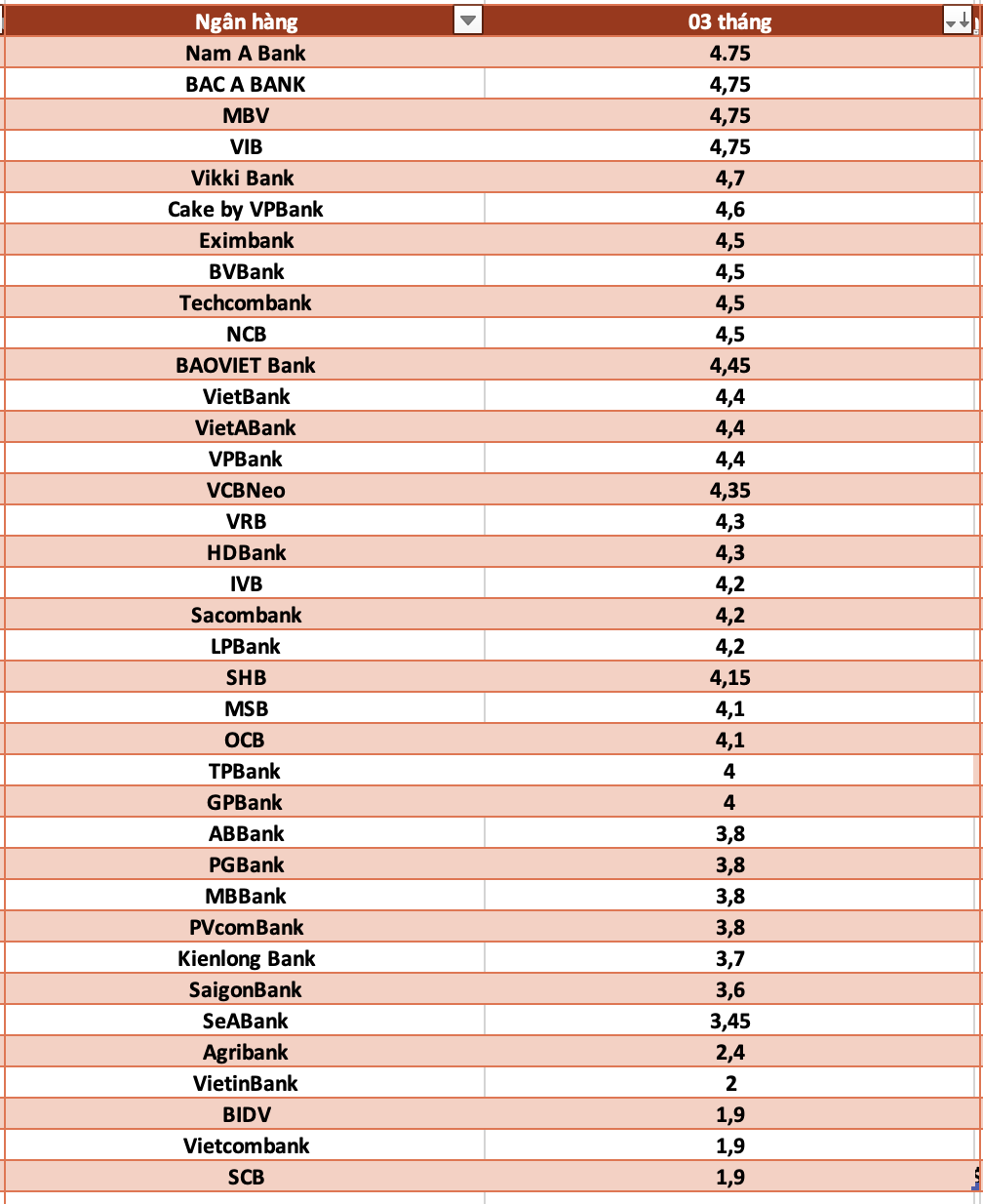 So sánh lãi suất ngân hàng cao nhất ở kỳ hạn 3 tháng