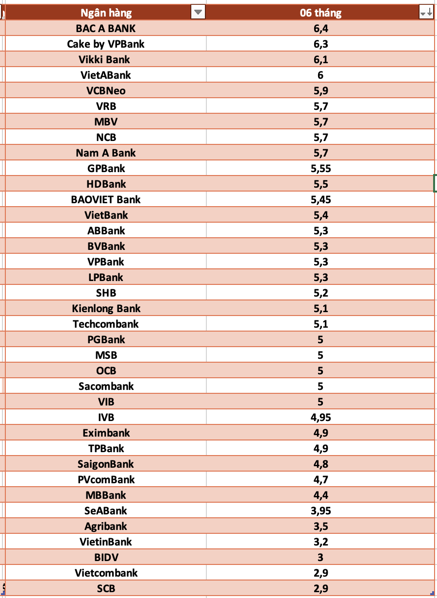 Lãi suất gửi tiết kiệm tại các ngân hàng kỳ hạn 6 tháng