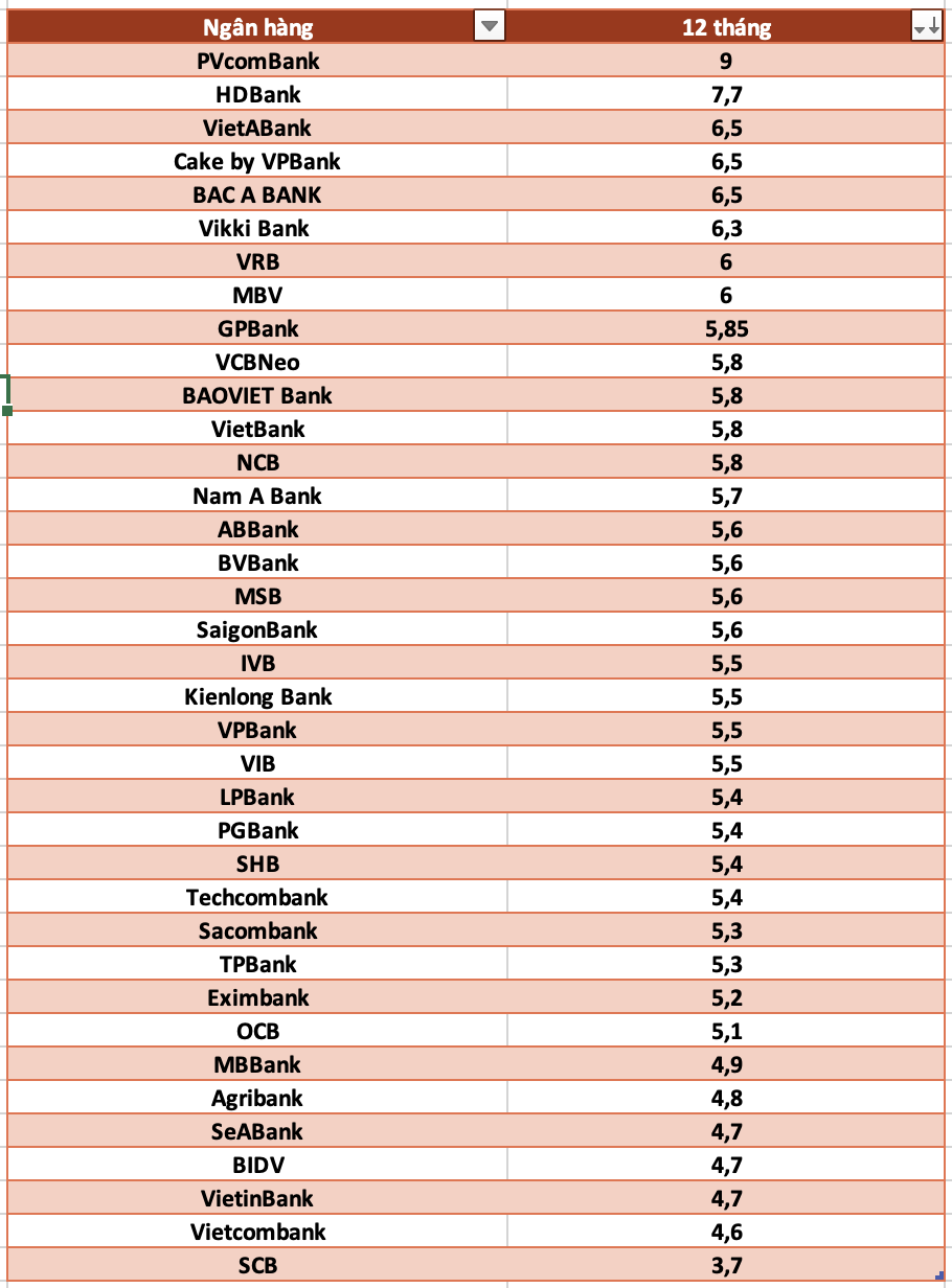 Thống kê các ngân hàng có lãi suất tiền gửi tiết kiệm cao nhất hiện nay: