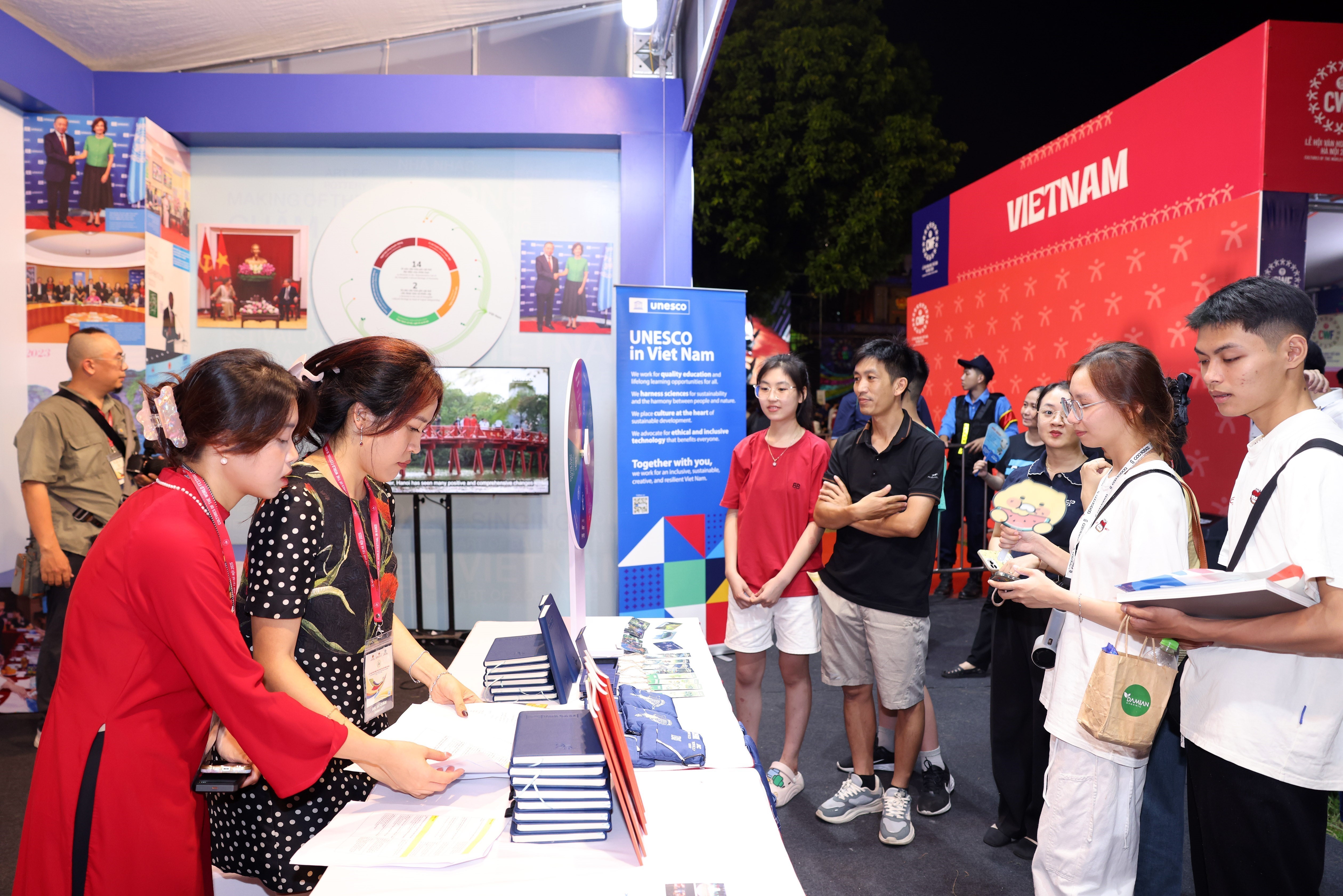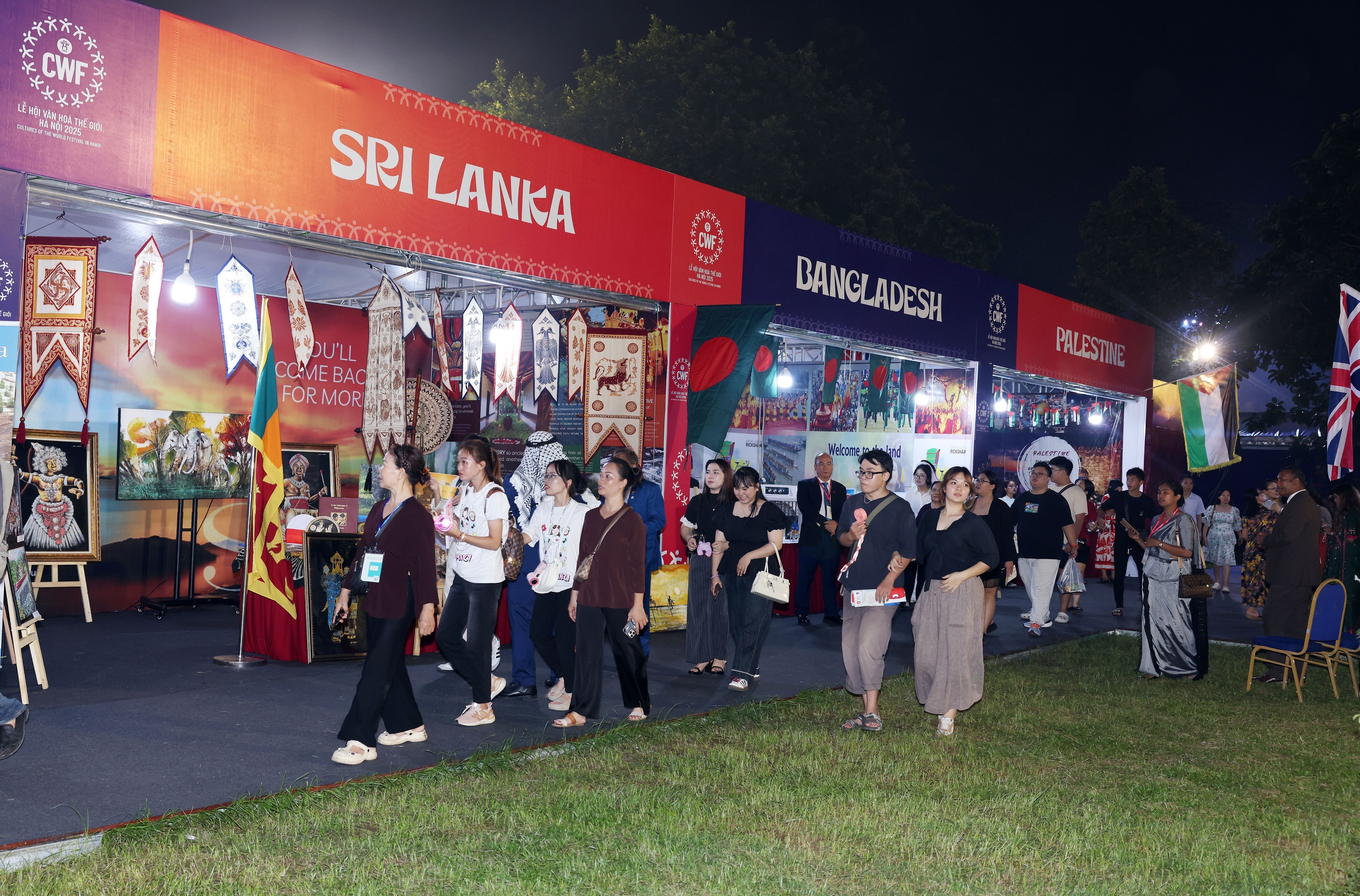 Trong không gian “Con đường văn hóa”, du khách được du hành qua gần 50 quốc gia, từ Hàn Quốc, Nhật Bản, Pháp, Iran đến Lào, Angola, Cuba, Angola, Palestine… mỗi gian hàng là một “ô cửa” mở ra bản sắc riêng, từ trang phục truyền thống, nhạc cụ, hội họa đến trò chơi dân gian, nghi lễ cổ truyền...