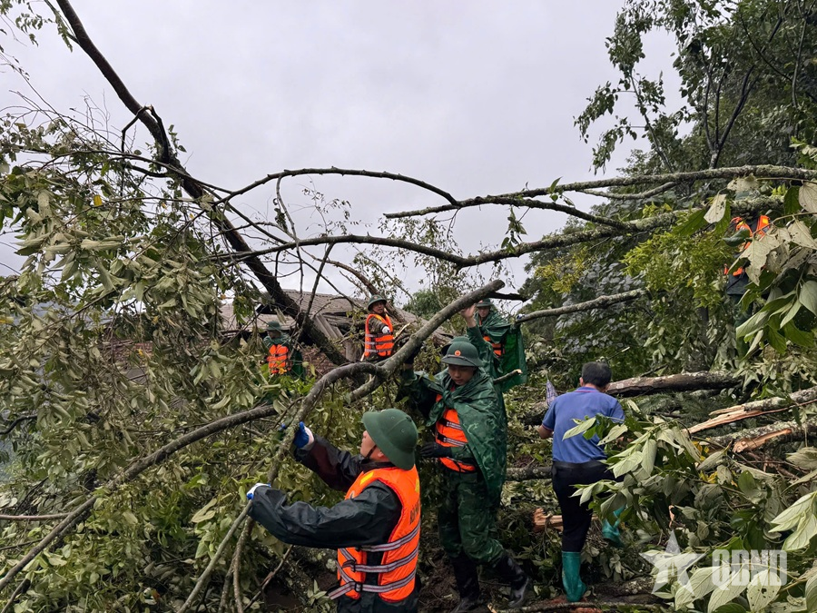 Dọn dẹp cây đổ sau bão.