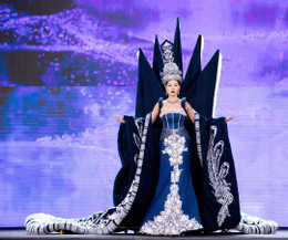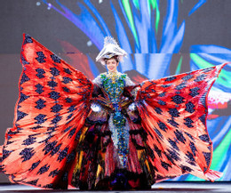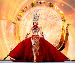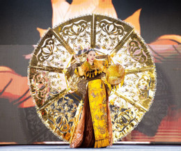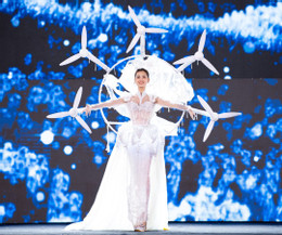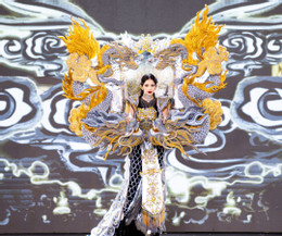 Hoa hậu Thế giới Việt Nam 2019 Lương Thuỳ Linh sải bước với thiết kế Khảm xà cừ, lấy cảm hứng từ nghề thủ công truyền thống cùng tên. Bộ trang phục truyền tải giá trị văn hoá, tài năng các nghệ nhân dân gian Việt.