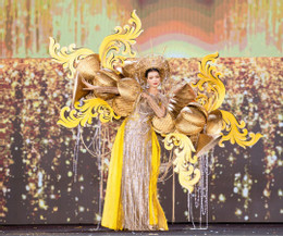 Hoa hậu Liên lục địa 2022 Lê Nguyễn Bảo Ngọc trình diễn thiết kế Thủy yên, lấy cảm hứng từ hình tượng nghê ngậm ngọc. Hình ảnh con nghê thường thấy trong kiến trúc các cung đình, có ý nghĩa quan trọng trong tín ngưỡng, tôn giáo Việt Nam.