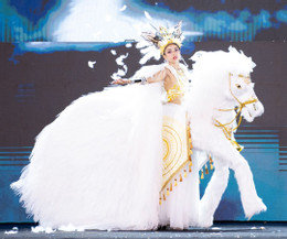 Phần thi của thí sinh Bùi Lý Thiên Hương với trang phục mang tên Trưng Vương (tác giả Nguyễn Huy Hoàng), MC thuyết minh bộ trang phục lấy cảm hứng từ hình ảnh Bà Trưng cưỡi voi ra trận. Tác giả tạo mô hình con voi bằng các chất liệu thủ công, gắn bánh xe để có thể di chuyển trên sân khấu.