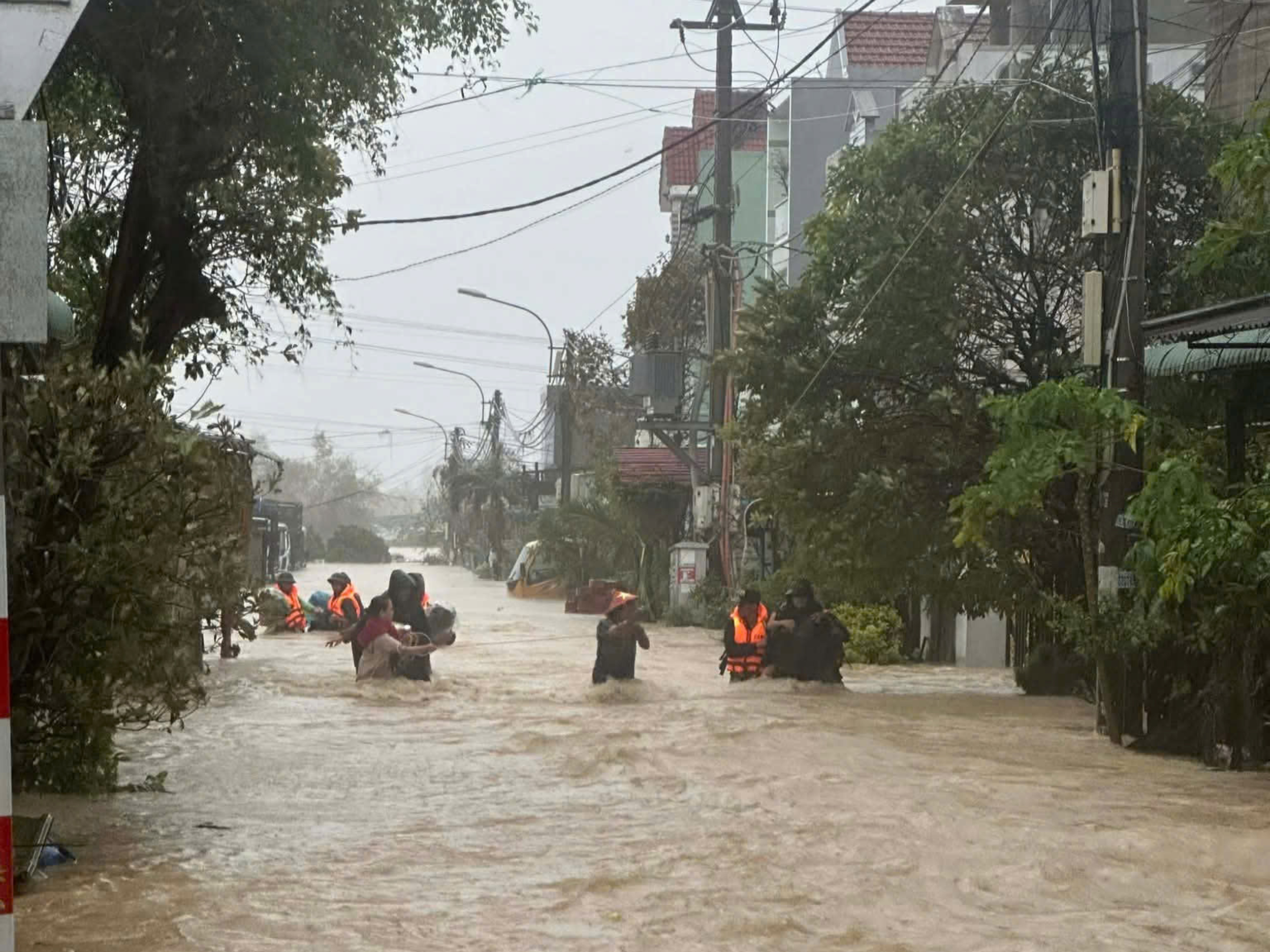 Nhiều khu vực tại Quy Nhơn (Gia Lai) đang ngập lụt, lực lượng chức năng được huy động để sơ tán dân. ẢNH: TRƯƠNG ĐÌNH TÂN