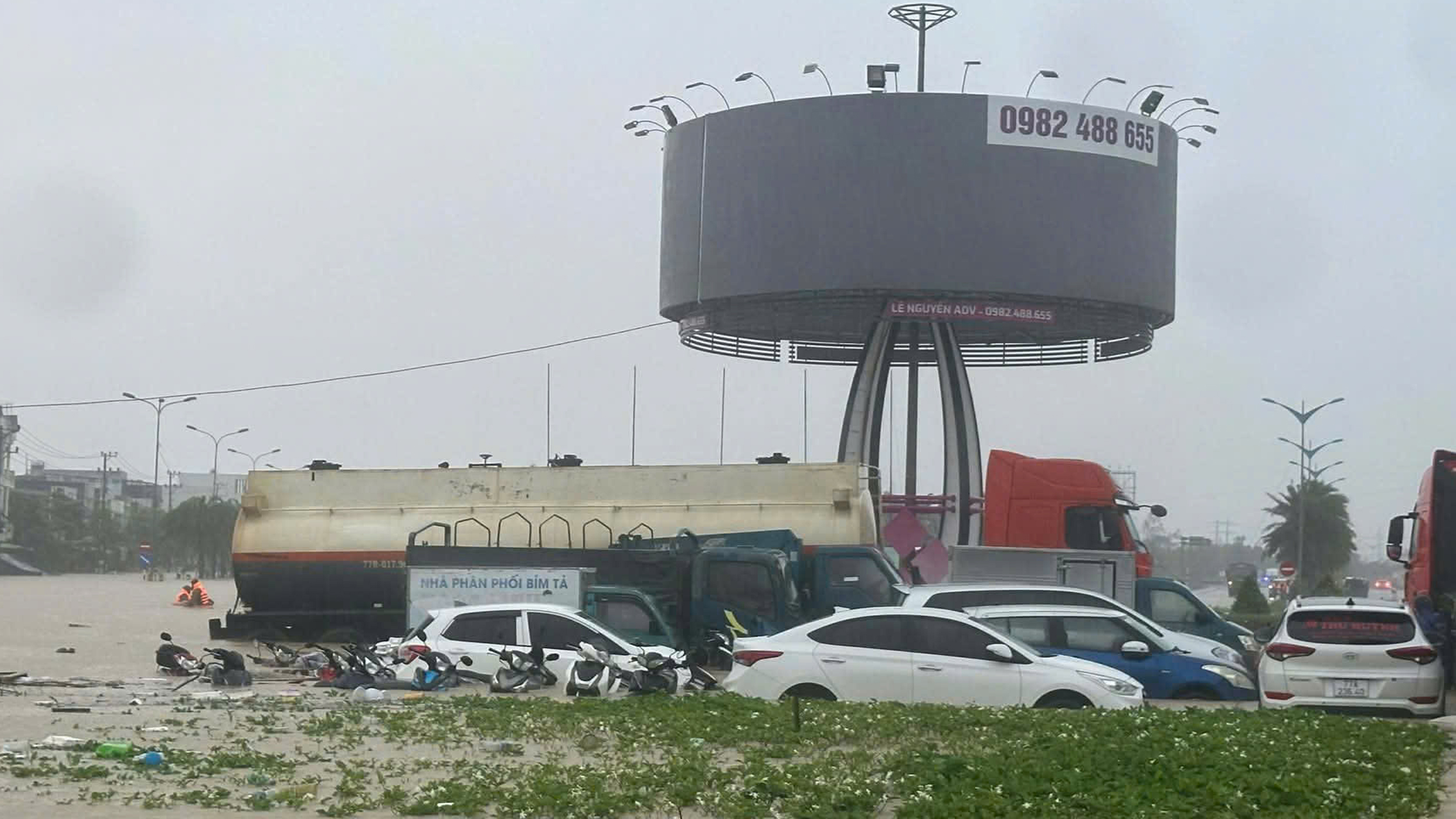 Nhiều ô tô, xe máy được người dân đưa đến chỗ cao vẫn bị ngập nước. ẢNH: TRƯƠNG ĐÌNH TÂN