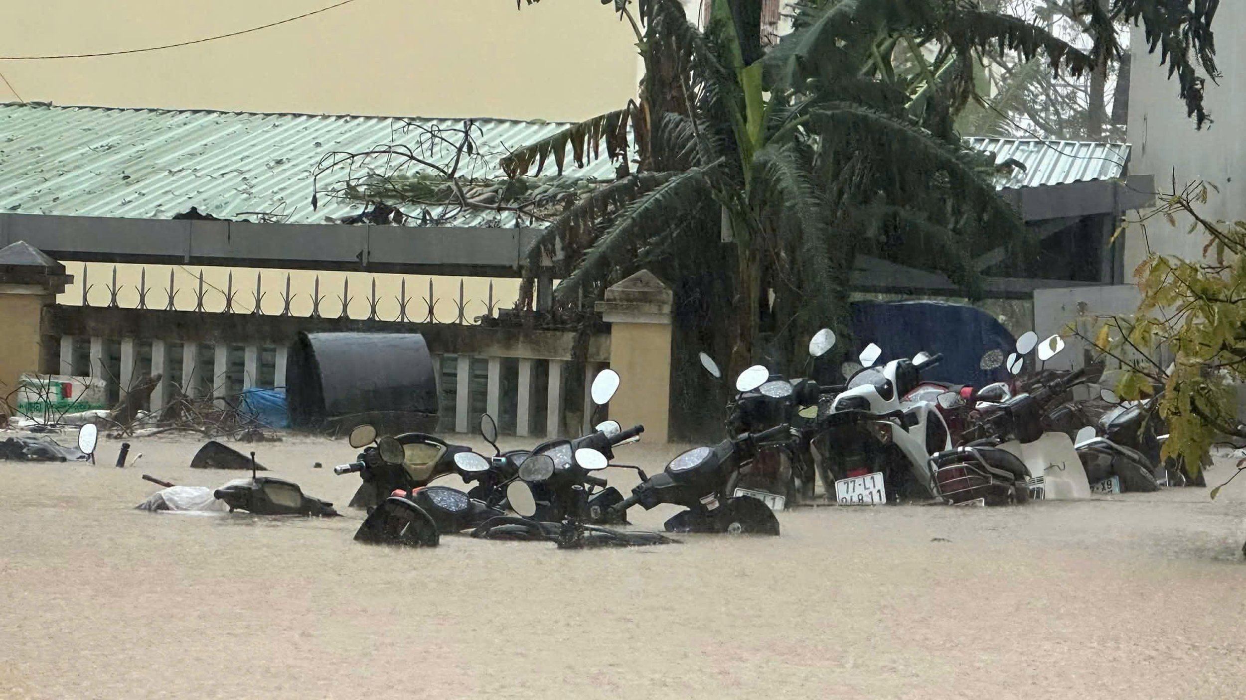 Xe máy để trên lề đường vẫn bị ngập hơn 1 m. ẢNH: TRƯƠNG ĐÌNH TÂN
