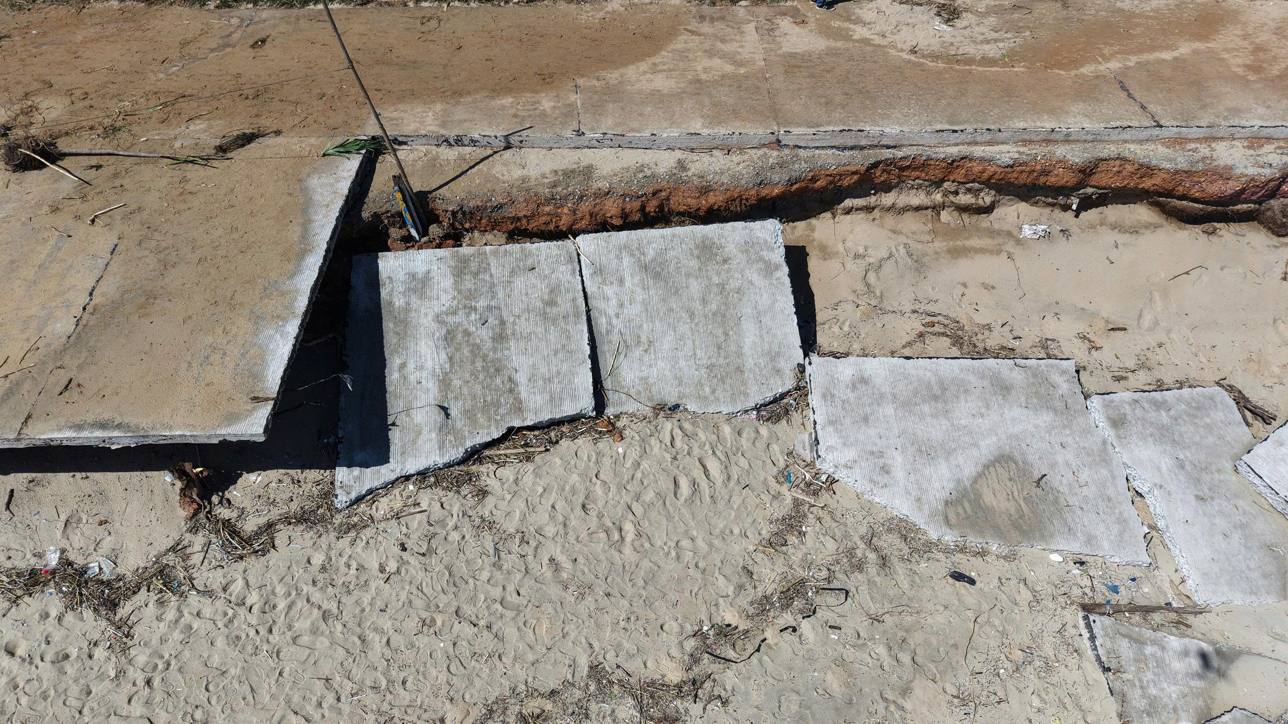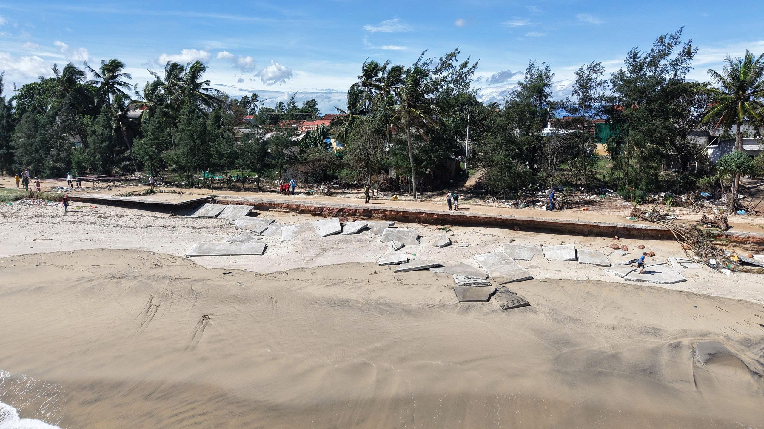Cảnh hư hại của đường ven biển xã Long Phụng