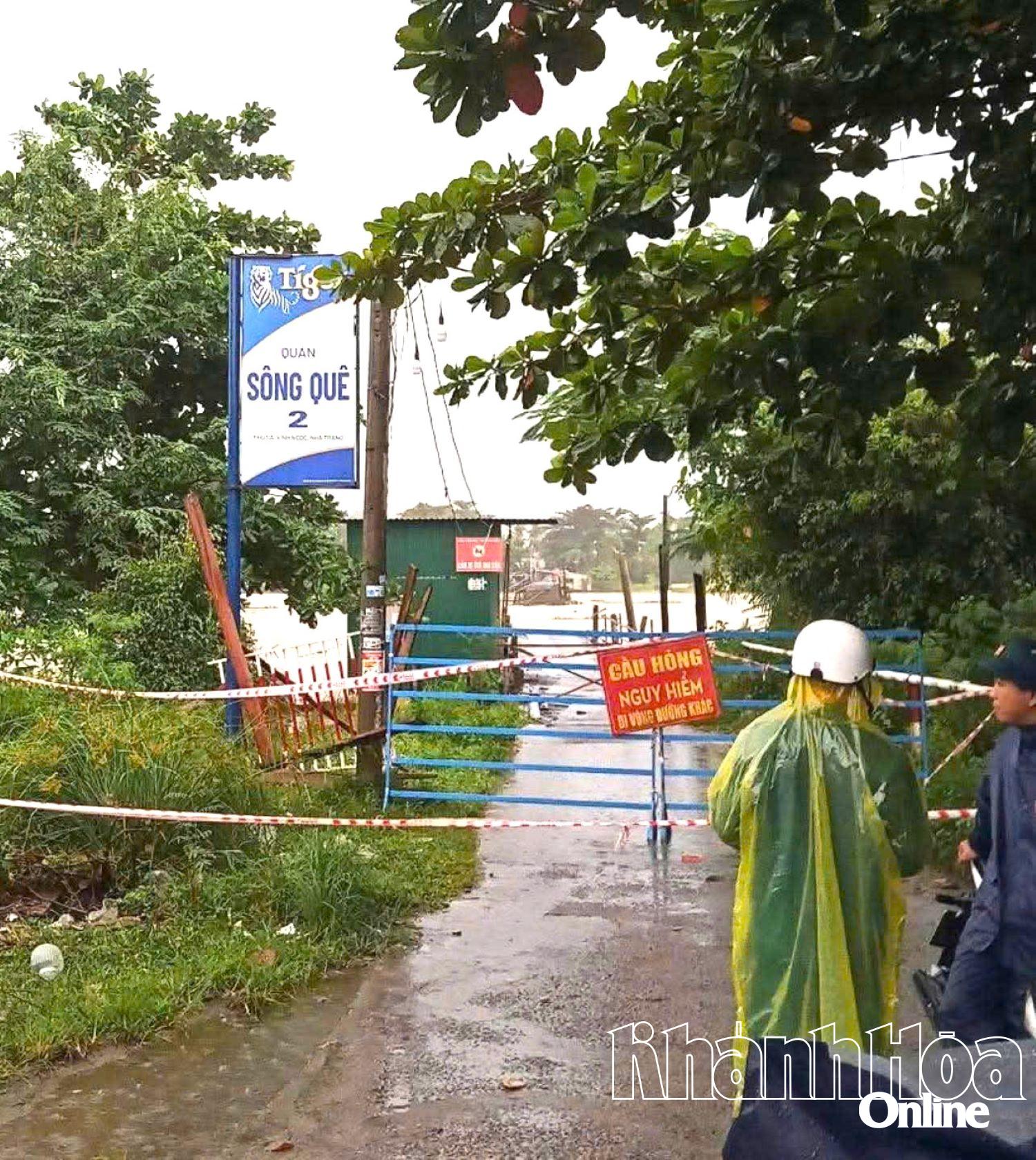 Tại phường Tây Nha Trang, mưa lớn đã cuốn trôi một đoạn cầu gỗ Phú Kiểng. Để đảm bảo an toàn cho người dân, phường Tây Nha Trang đã cử lực lượng chốt chặn ở 2 điểm cầu không cho người dân qua lại.