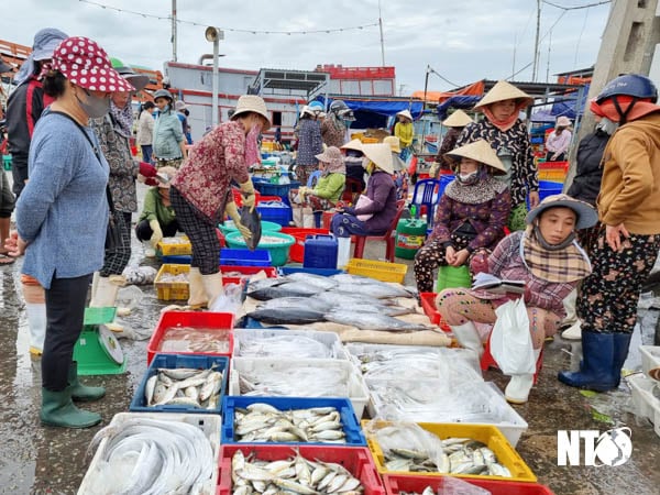 Thu mua hải sản tại Cảng cá Đông Hải.