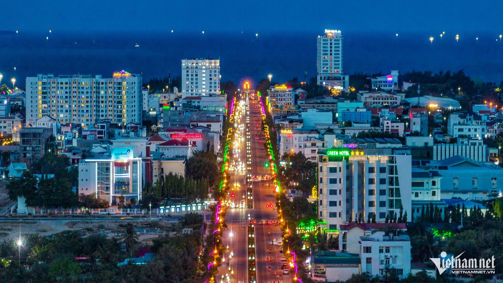 Thành phố Phan Rang-Tháp Chàm rực rỡ ánh đèn màu trong một buổi xế chiều tháng 5/2025. Đây là đô thị loại II, tỉnh lỵ và trung tâm hành chính của Ninh Thuận.