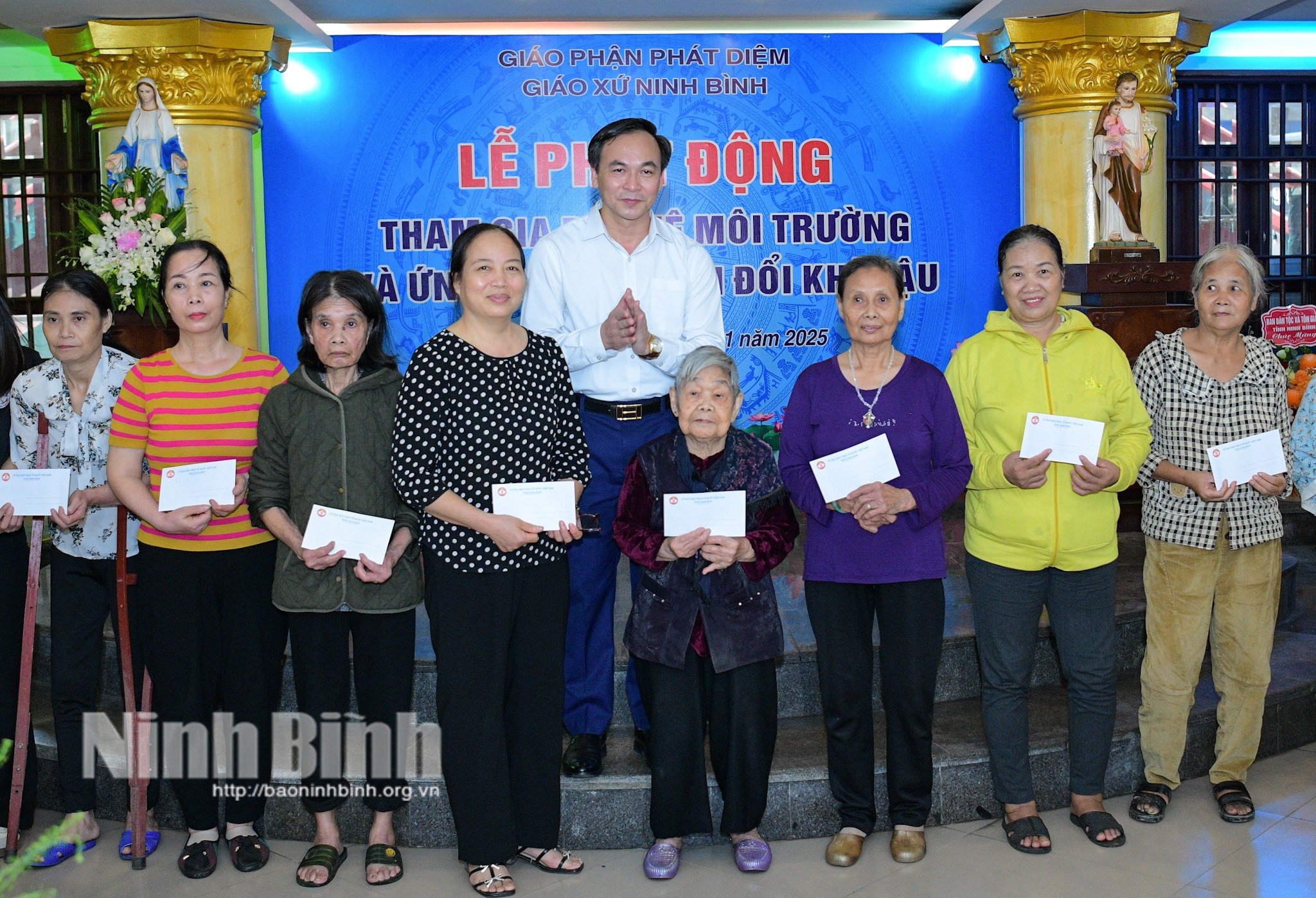 Tại buổi lễ phát động đã diễn ra chương trình ký cam kết của đại diện các hộ gia đình với Giáo xứ Ninh Bình về bảo vệ môi trường, ứng phó với biến đổi khí hậu; tổ chức trao quà của Ủy ban MTTQ Việt Nam tỉnh cho 50 hộ gia đình có hoàn cảnh khó khăn trên địa bàn, mỗi suất quà trị giá 500 nghìn đồng; trao vật dụng chứa rác thải môi trường cho Giáo xứ; phát động dọn vệ sinh, thu gom rác thải trong khu vực Giáo xứ Ninh Bình.