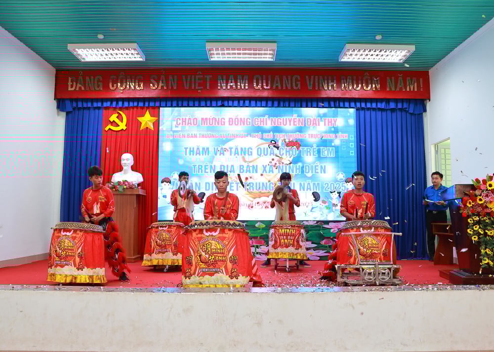 Mở màn là chương trình nghệ thuật đặc sắc sôi động và đáng nhớ dành tặng cho các em thiếu nhi xã Ninh Điền; những lời chúc Tết Trung thu đầy ý nghĩa của Chủ tịch nước Lương Cường viết trong thư gửi gắm đến thiếu nhi toàn quốc.
