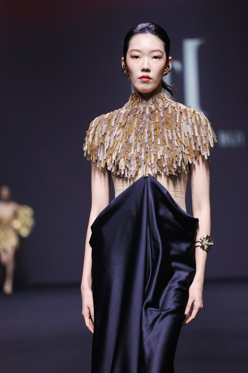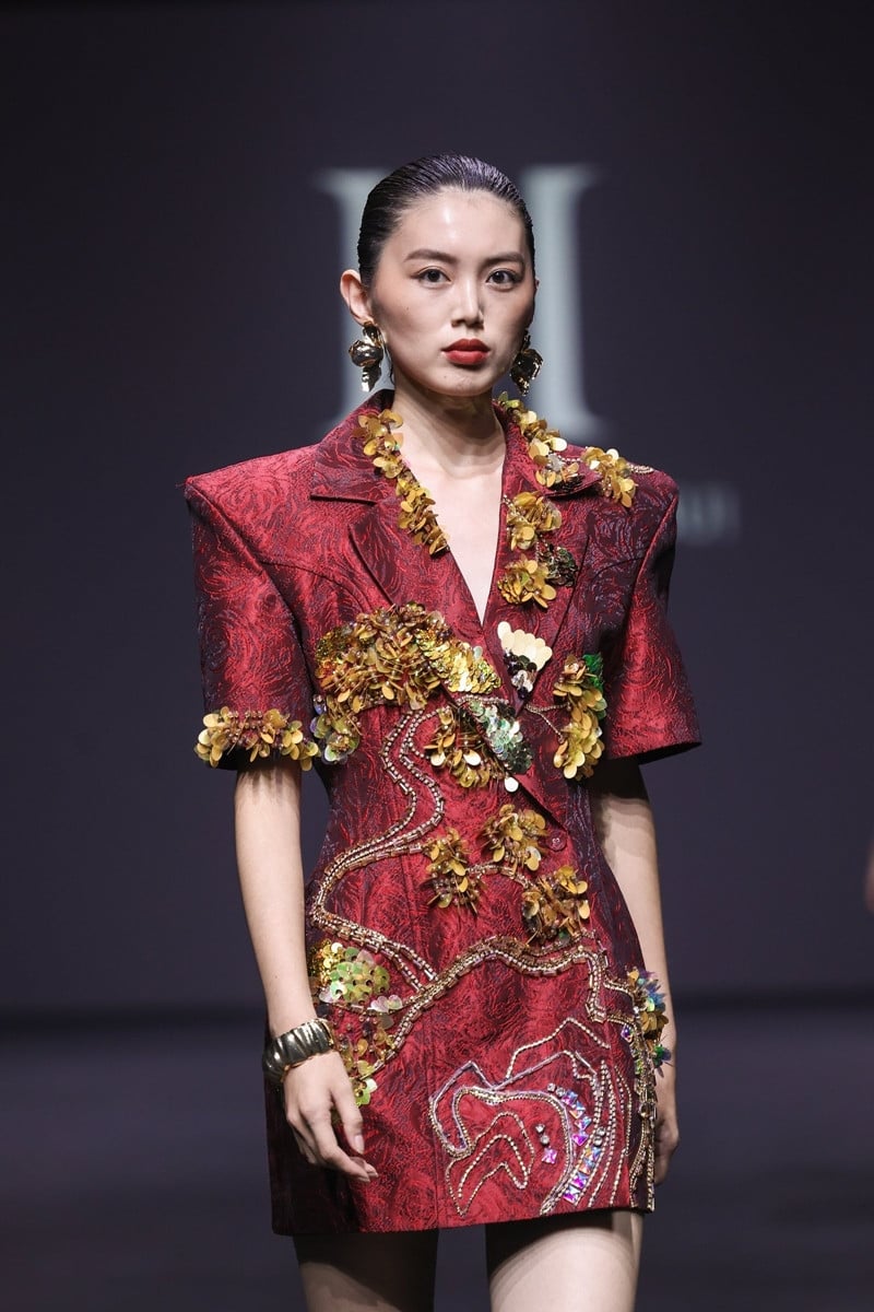 Bộ sưu tập sử dụng gam màu chủ đạo vàng, đỏ và đen không chỉ thể hiện vẻ kiêu sa của người phụ nữ mà còn mang ý nghĩa của sự thịnh vượng, nhiệt huyết và chiều sâu văn hóa vươn tầm quốc tế. Mỗi chi tiết cầu kỳ là lời khẳng định về tài năng của người thợ thủ công, hòa quyện giữa truyền thống và tinh thần hiện đại.