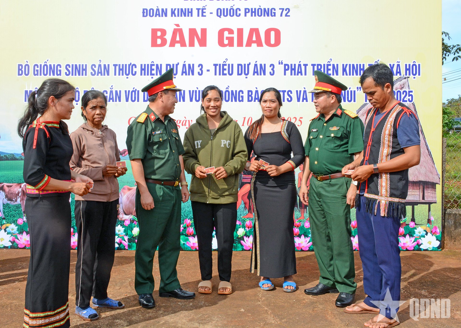 Dự các chương trình trao bò giống cho người dân trong Dự án 3 - Tiểu dự án 3 thuộc Chương trình mục tiêu quốc gia phát triển kinh tế - xã hội vùng đồng bào dân tộc thiểu số và miền núi của các đơn vị: Lữ đoàn Pháo phòng không 234 (Quân đoàn 34); các đoàn kinh tế - quốc phòng 72, 74, 710, 717 (Binh đoàn 15), chúng tôi ghi nhận, cấp ủy, chính quyền địa phương và nhân dân đánh giá cao các mô hình sinh kế của Quân đội, bà con gọi đó là “sinh kế thương hiệu bộ đội”.