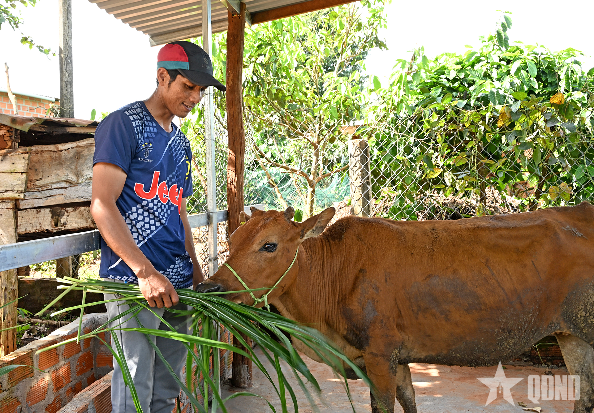 “Vợ chồng mình được bộ đội và cán bộ xã dạy cách chăn nuôi bò sinh sản, hỗ trợ làm chuồng và cấp bò giống, cỏ giống, thức ăn ban đầu. Vợ chồng quyết tâm nuôi bò giống thật tốt, để có nhiều bê con, có tiền trang trải cho cuộc sống”, ông A Chưnh nói.