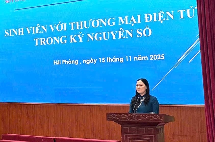 Bà Phượng nhấn mạnh, thế hệ sinh viên Hải Phòng đang đứng trước ngưỡng cửa quan trọng để khởi nghiệp và lập nghiệp. TMĐT chính là chìa khóa vàng cho tương lai, mở ra hệ sinh thái nghề nghiệp đa dạng từ marketing số, phân tích dữ liệu, logistics thông minh đến thiết kế giao diện và công nghệ. Kỹ năng số sẽ giúp các bạn rèn luyện tư duy đổi mới, thích ứng nhanh và trở thành nguồn nhân lực trẻ, năng động cho nền kinh tế số.