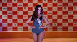 Bước vào phần thi áo tắm, Thanh Thủy khoe trọn kiểu tóc xoăn nhẹ quyến rũ, khoe làn da trắng mịn và đường cong nuột nà. Cô mặc bikini trắng và catwalk tự tin trên sân khấu.
