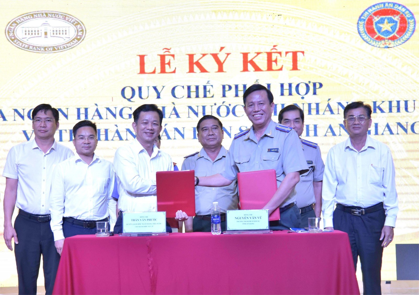 Đại diện Ngân hàng Nhà nước Chi nhánh Khu vực 15 và Thi hành án dân sự tỉnh An Giang ký kết quy chế phối hợp trong công tác thi hành án dân sự.