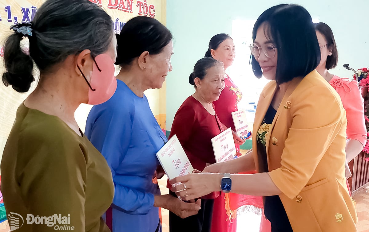 | Tỉnh ủy viên, Phó Chủ tịch UBND tỉnh Đồng Nai Nguyễn Thị Hoàng trao khen thưởng các gia đình văn hóa tiêu biểu của ấp Phú Hòa 1. Ảnh: Lê Trung |