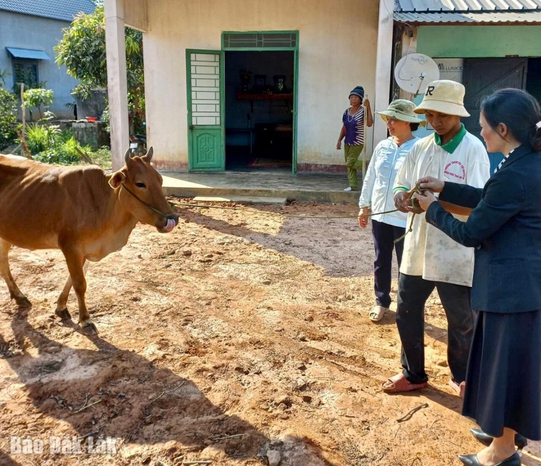 Trao bò sinh sản từ nguồn Quỹ Vì người nghèo của Ủy ban MTTQ Việt Nam tỉnh cho hộ nghèo tại xã Đắk Liêng.