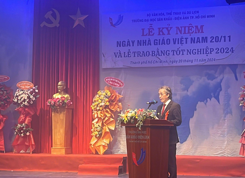 Cùng ngày, Trường Đại học Sân khấu – Điện ảnh TP.HCM cũng đã tổ chức Lễ kỷ niệm 42 năm Ngày Nhà giáo Việt Nam 20/11 nhằm tri ân các thế hệ nhà giáo, cán bộ, viên chức đã và đang công tác tại trường. Tham dự có TS. Lê Anh Tuấn - Vụ trưởng Vụ Đào tạo Bộ VHTTDL.