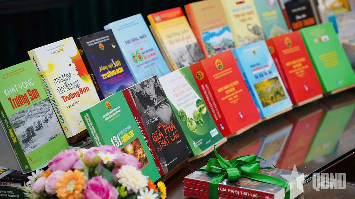 | Các đầu sách được Hội Truyền thống Trường Sơn - Đường Hồ Chí Minh trao tặng Thư viện Quân đội. |