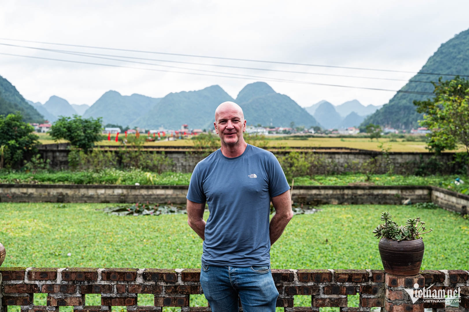 Nam du khách Ireland say mê khung cảnh của ngôi làng ở Lạng Sơn. Ảnh: Nguyễn Huy
