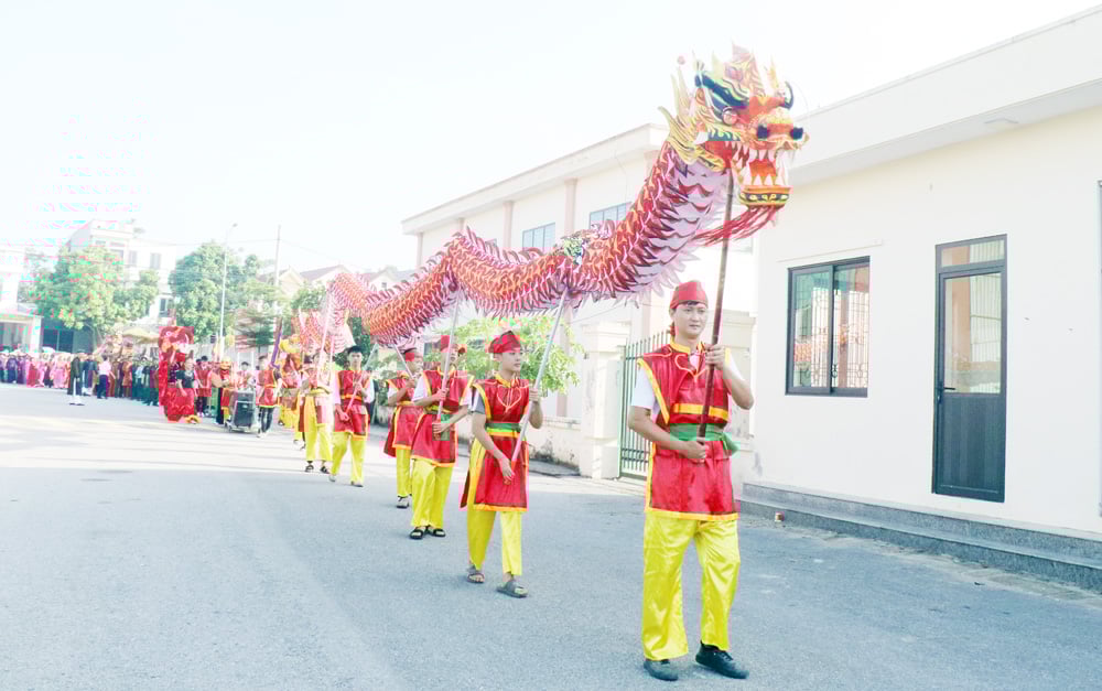 Lễ rước từ đình tổ dân phố Như Thiết về đền thờ Hán Quận công Thân Công Tài. |