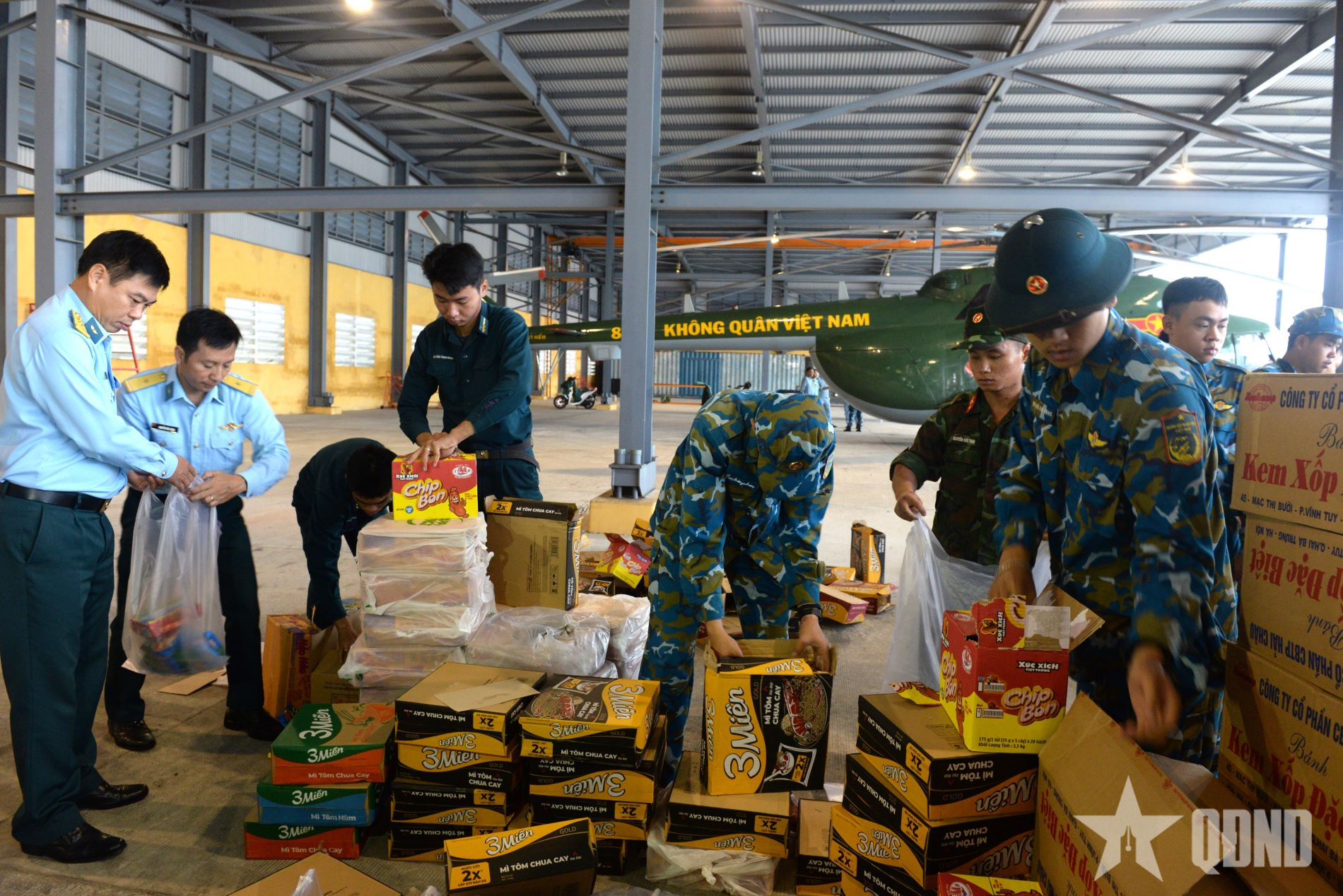 Trung đoàn Không quân 930 tiếp nhận 1.000 suất quà của Quân khu 5, tổ chức đóng gói để vận chuyển đến nhân dân các tỉnh Nam Trung Bộ. |