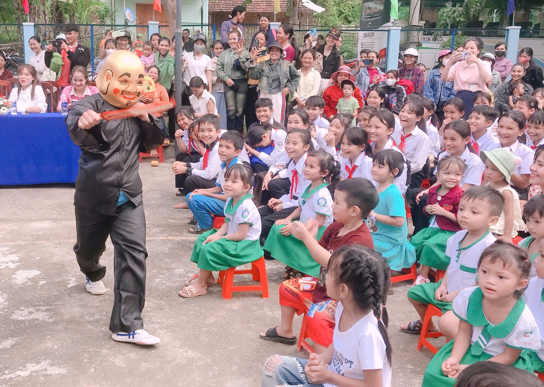 Năm nay cũng là lần đầu tiên, học sinh Trường Phổ thông dân tộc bán trú Tiểu học - THCS Võ Thị Sáu rộn ràng tiếng trống lân, tiếng cười trong trẻo. Nơi đây được đón một Tết Trung thu có quy mô, trọn vẹn và đúng nghĩa, với các hoạt động phá cỗ dưới trăng, cùng múa lân, cùng thưởng thức tiệc buffet với nhiều loại quà bánh.