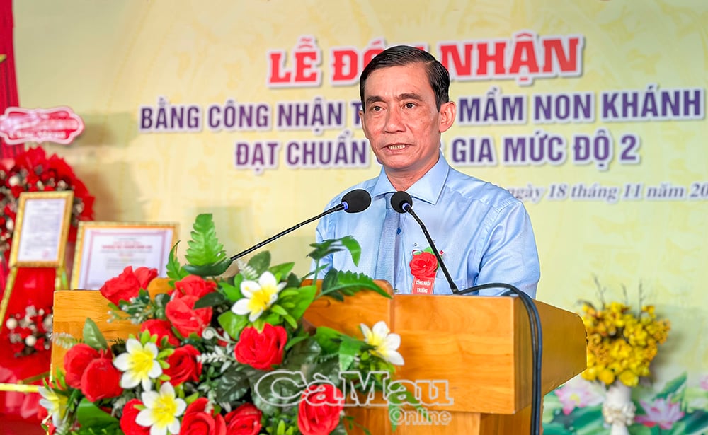 Phát biểu tại buổi lễ, TS. Lê Hoàng Dự, Phó Giám đốc Sở GD&ĐT tỉnh Cà Mau chúc mừng và ghi nhận những thành tích mà Trường Mầm non Khánh Lộc đã đạt được. Ông đánh giá cao tinh thần nỗ lực, trách nhiệm và sự phối hợp hiệu quả của Đảng bộ, chính quyền, Nhân dân và tập thể nhà trường trong quá trình xây dựng trường đạt chuẩn quốc gia mức độ 2.