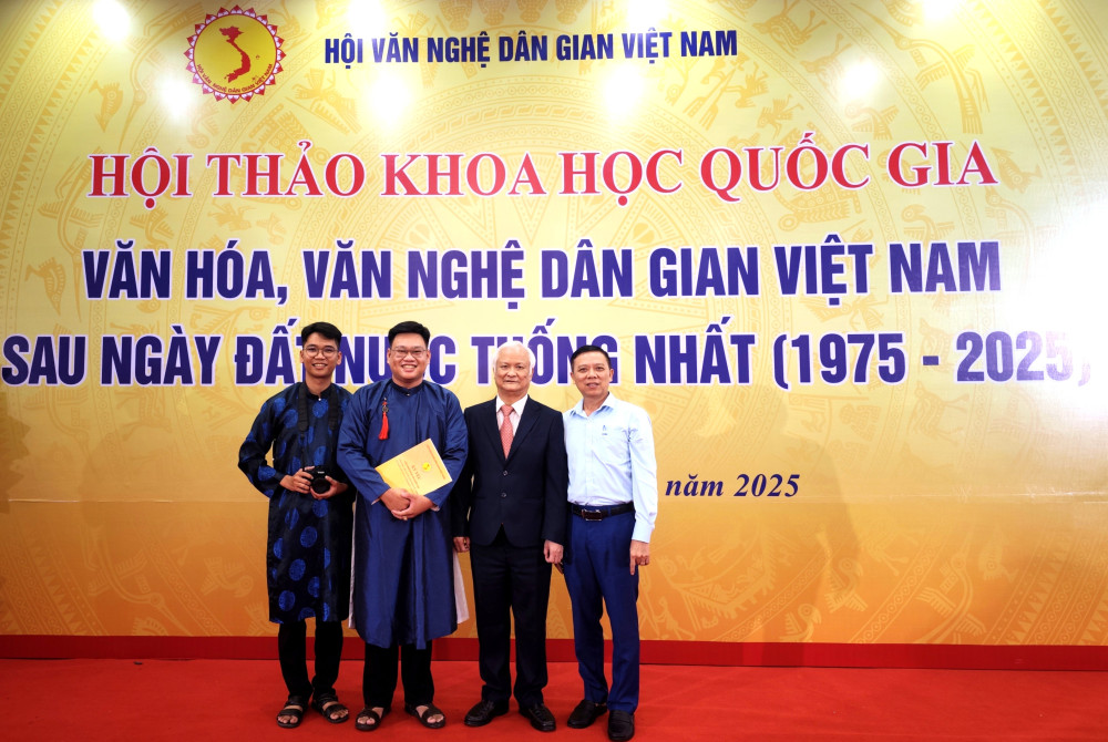 Anh Phí Thành Phát (thứ 2, từ trái sang) tham dự Hội thảo khoa học cấp quốc gia về Văn hóa, văn nghệ dân gian Việt Nam sau ngày đất nước thống nhất (1975-2025)