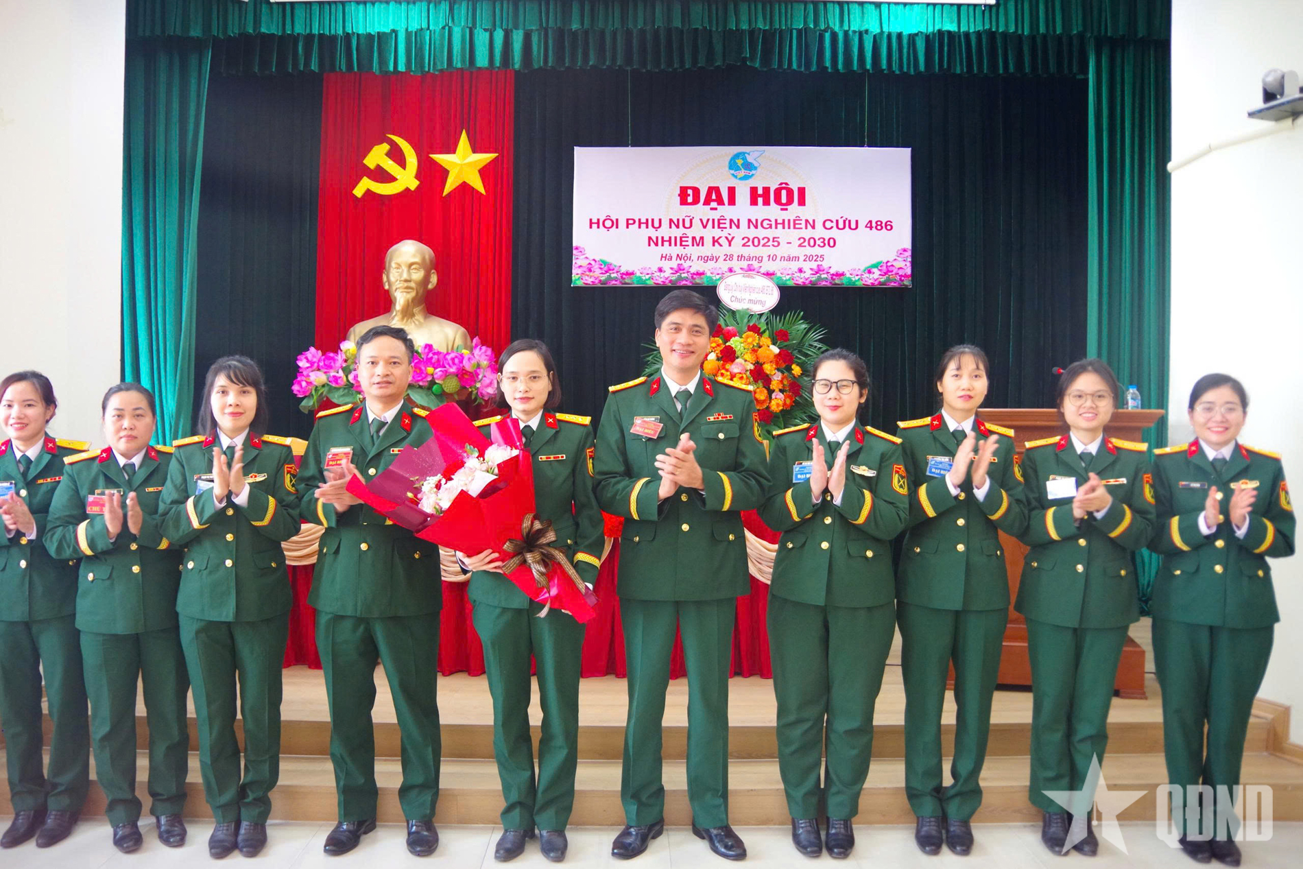 | Lãnh đạo Viện Nghiên cứu 486 tặng hoa chúc mừng Ban chấp hành Hội Phụ nữ Viện nhiệm kỳ 2025-2030. |